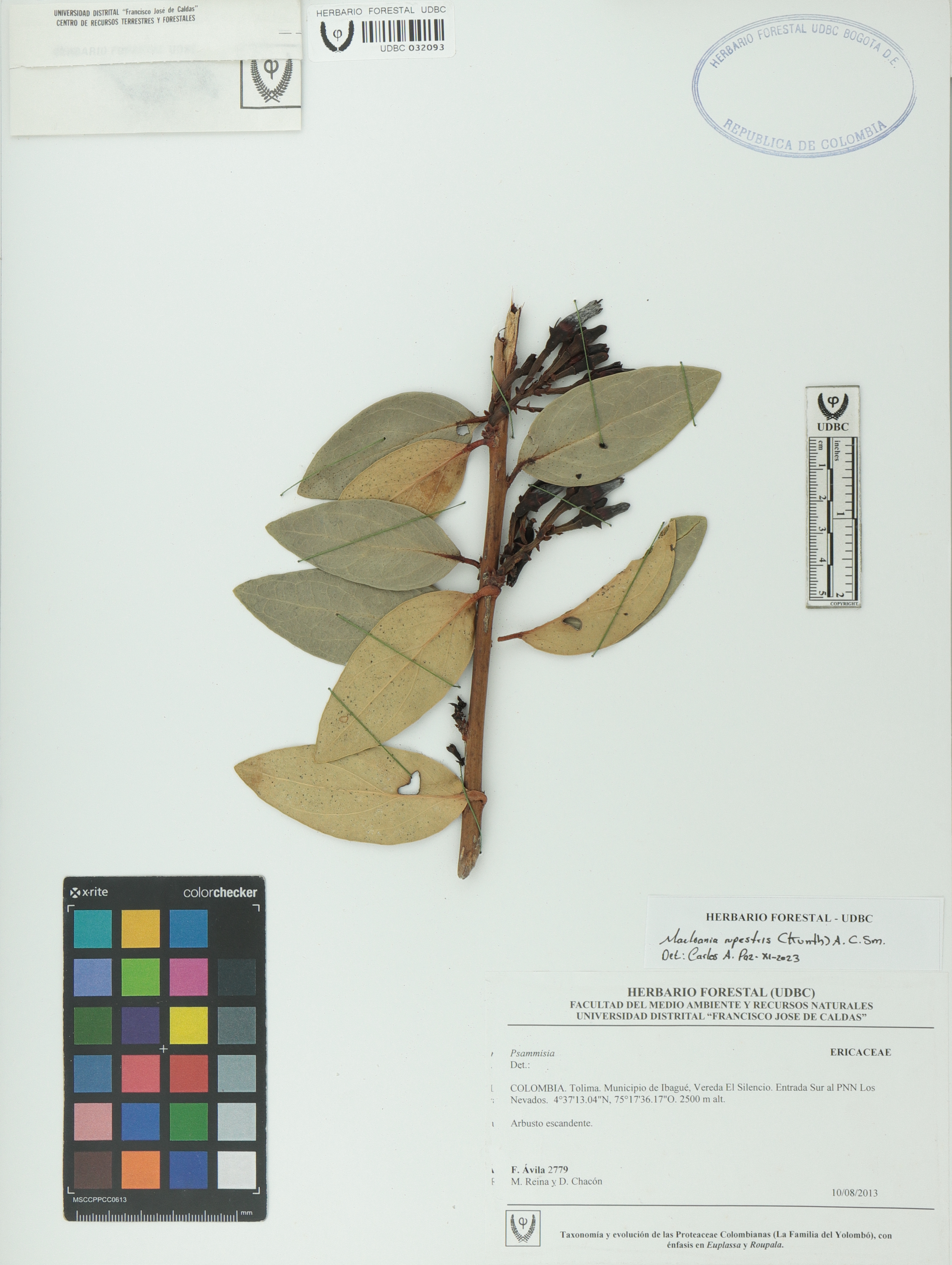 Fotografía del ejemplar Ávila, F. 2779, determinado como Macleania rupestris en el año 2023