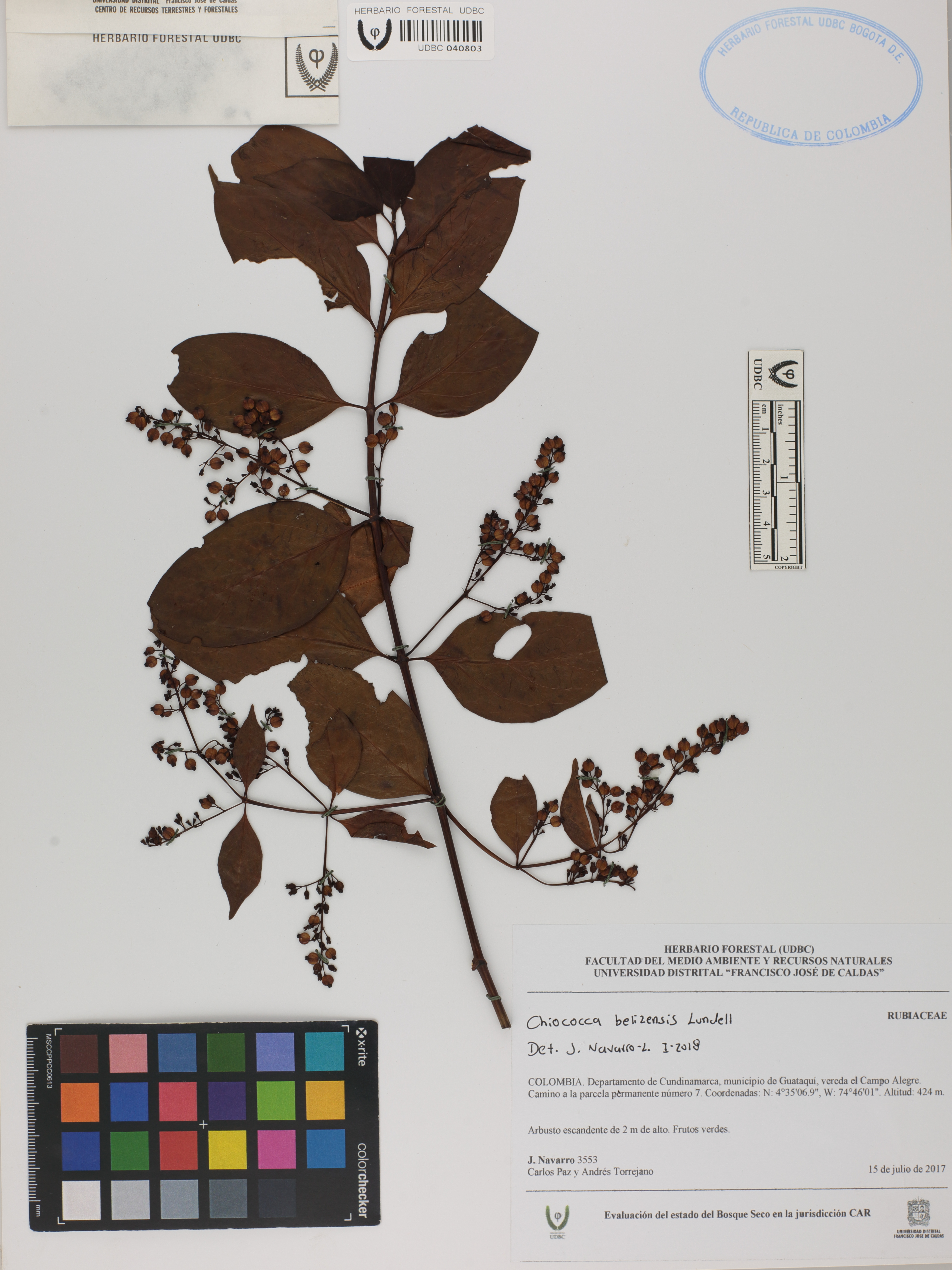 | dc.description | Fotografía del ejemplar Navarro, J. 3553, determinado como Chiococca belizensis en el año 2018 | |