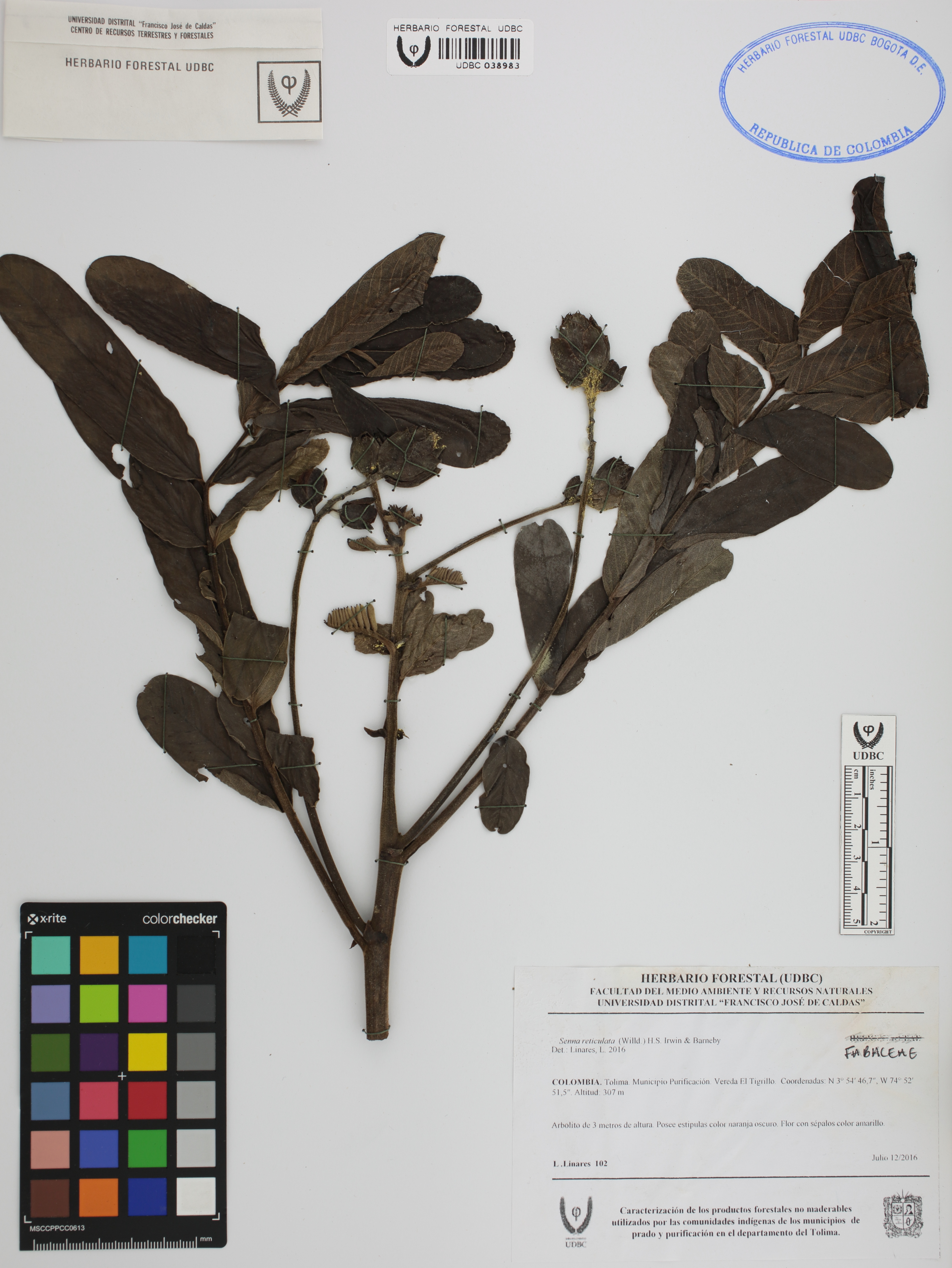 | dc.description | Fotografía del ejemplar Linares, L. 102, determinado como Senna reticulata en el año 2016 | |