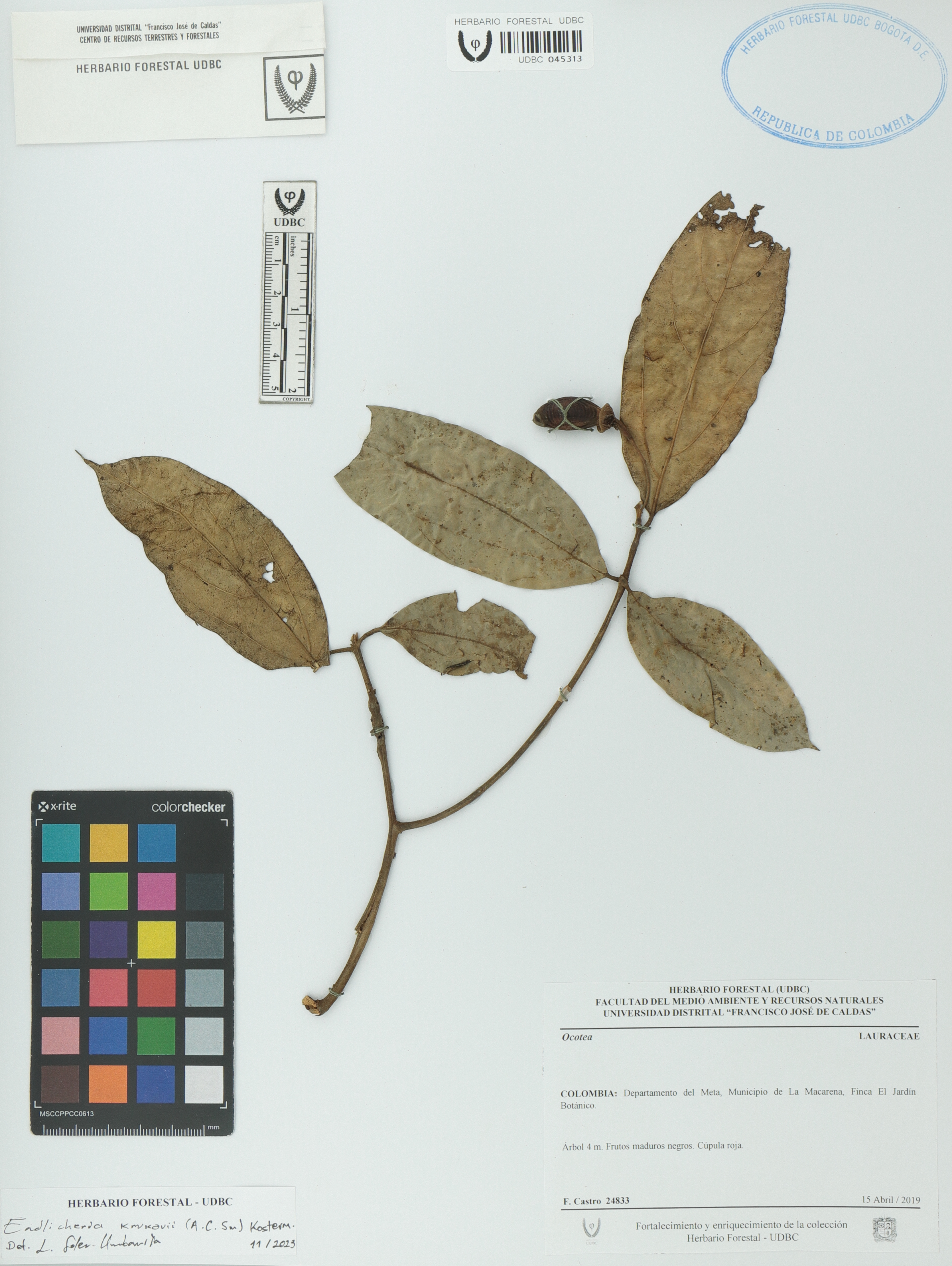 Fotografía del ejemplar Castro, F. 24833, determinado como Endlicheria krukovii en el año 2023