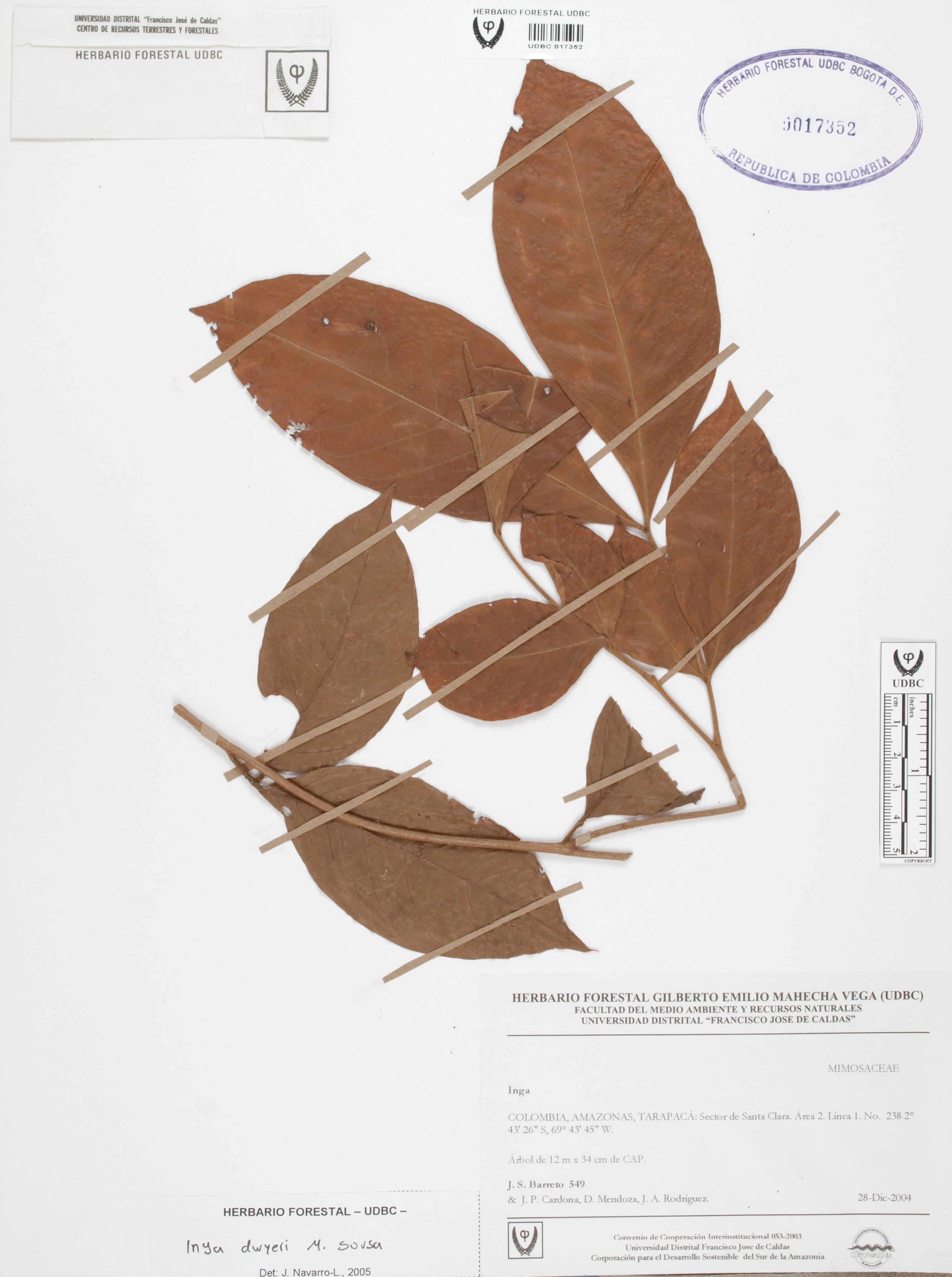 | dc.description | Fotografía del ejemplar Barreto, J. 549, determinado como Inga dwyeri en el año 2005 | |