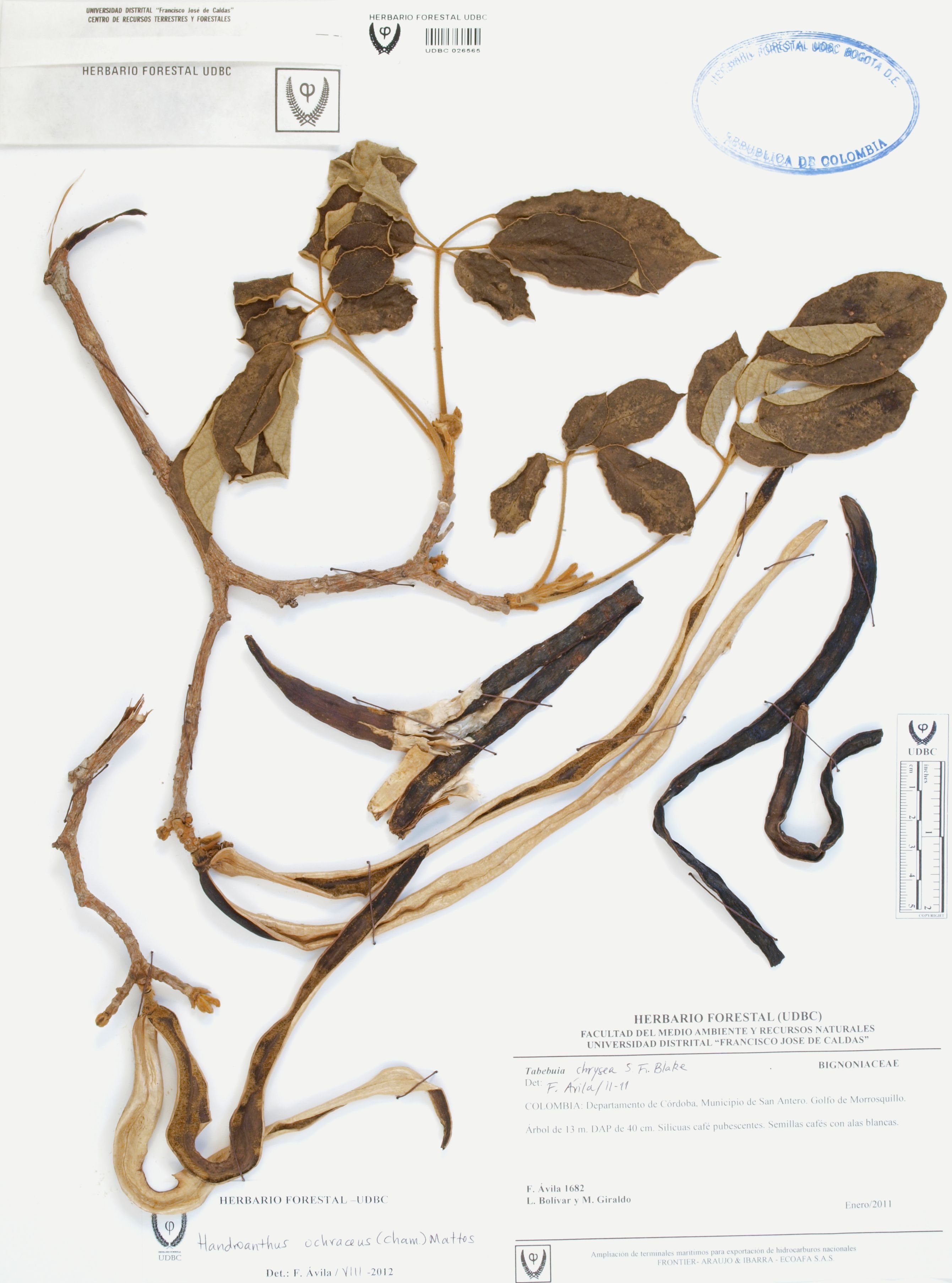 | dc.description | Fotografía del ejemplar Ávila, F. 1682, determinado como Handroanthus ochraceus en el año 2011 | |