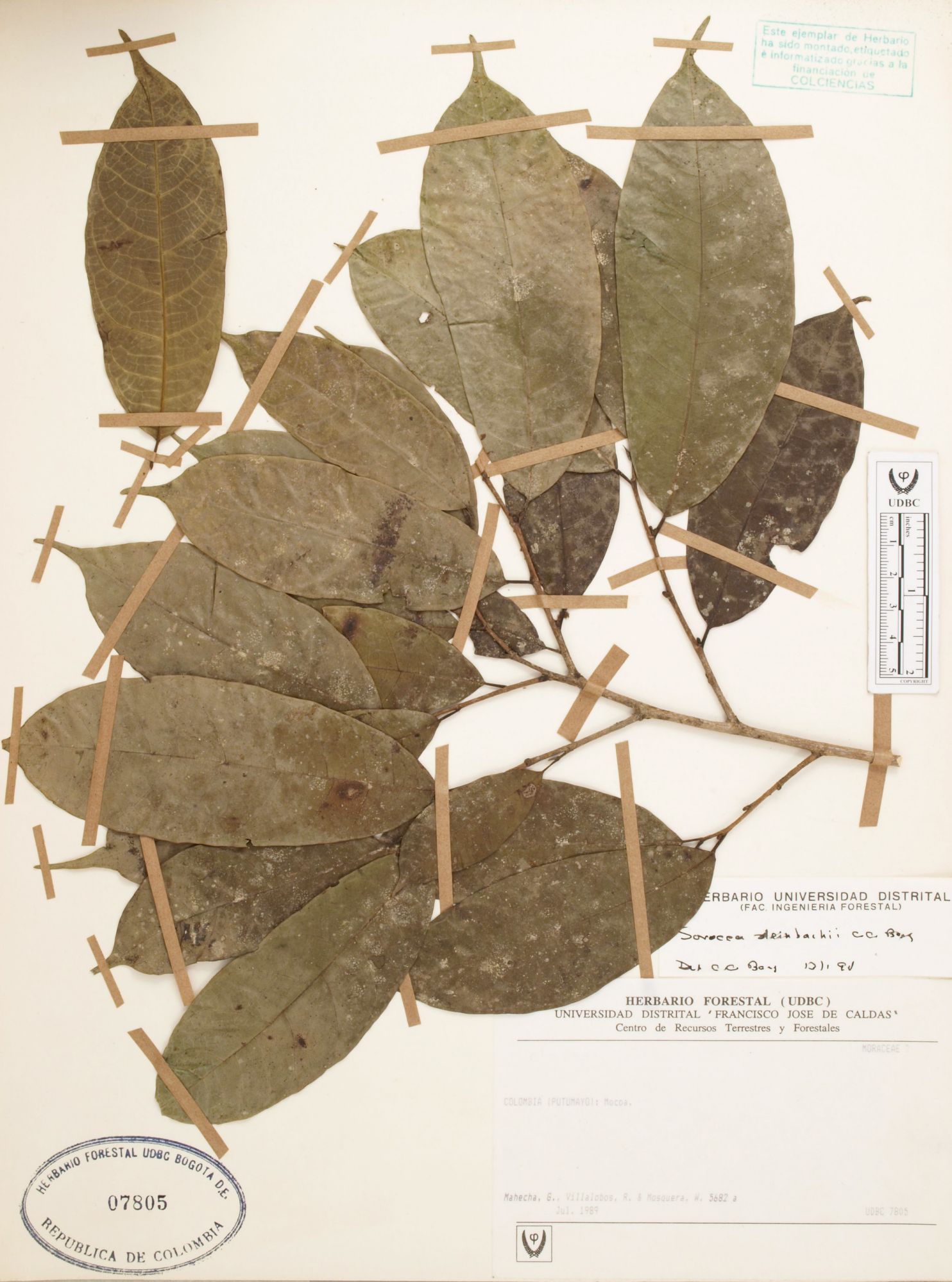 Fotografía del ejemplar Mahecha, G. 5682, determinado como Sorocea steinbachii en el año 1997