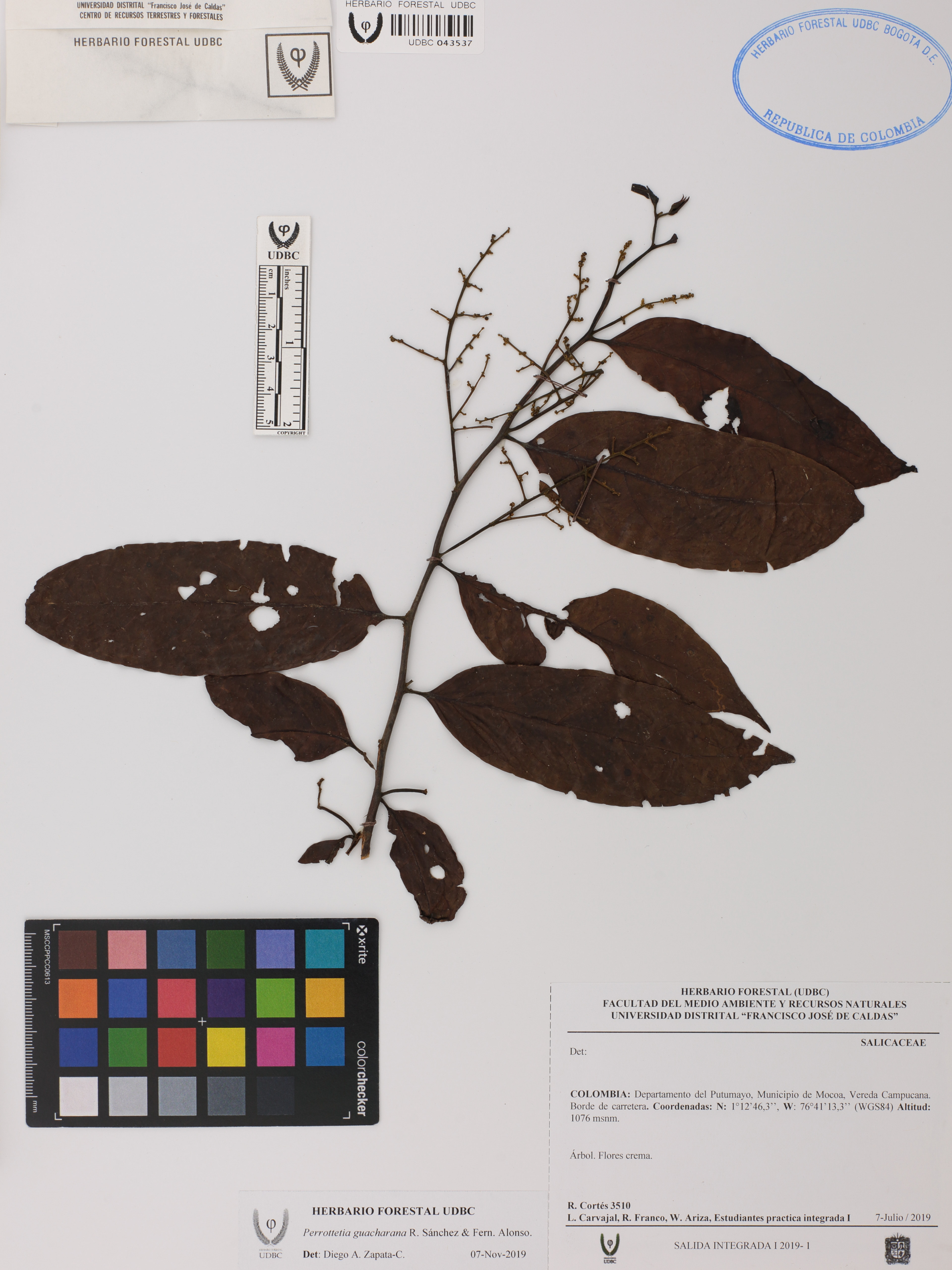 Fotografía del ejemplar Cortés, R. 3510, determinado como Perrottetia guacharana en el año 2019