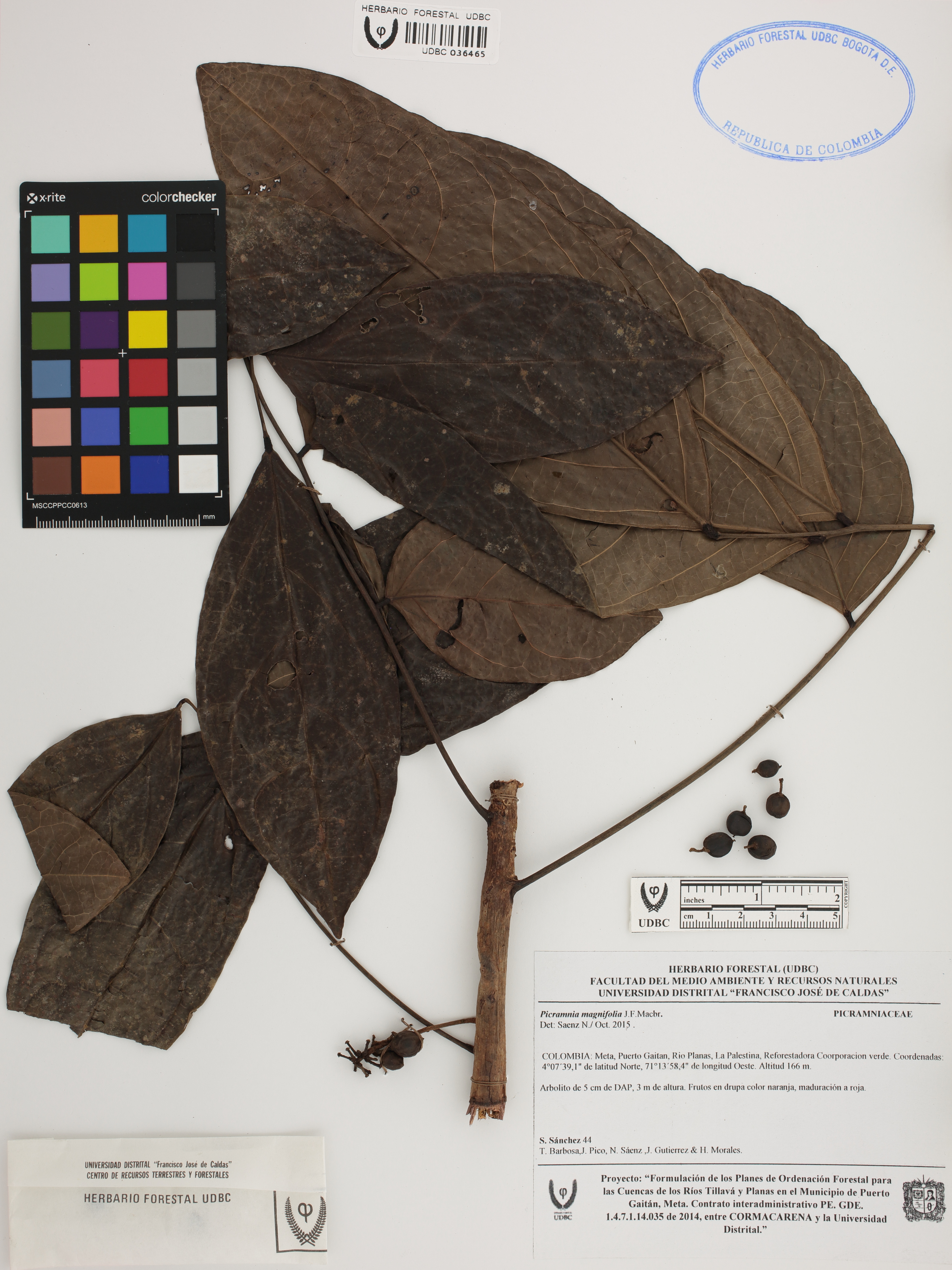 Fotografía del ejemplar Sánchez, S. 44, determinado como Picramnia magnifolia en el año 2015