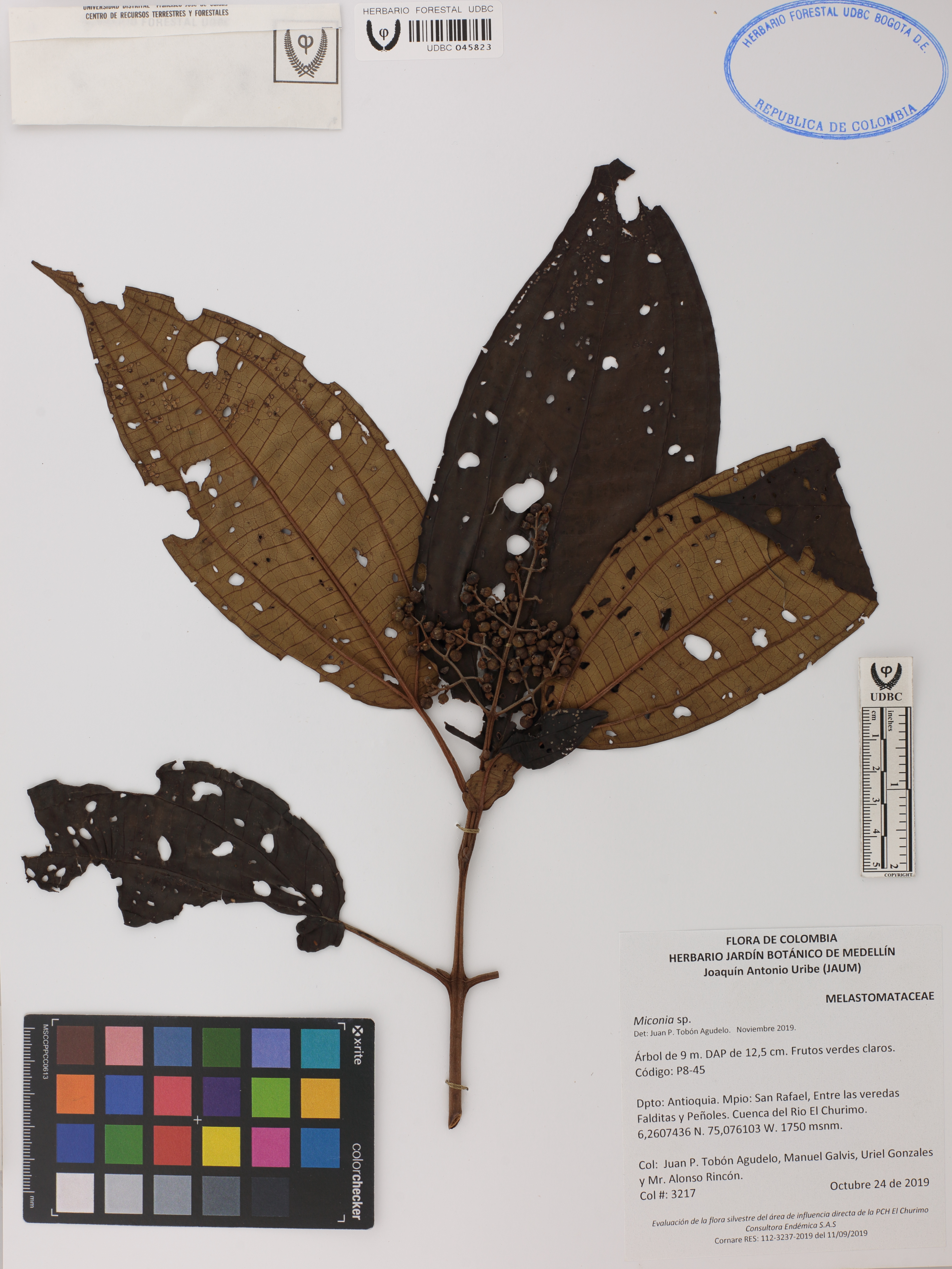 Fotografía del ejemplar Tobón-Agudelo, J. 3217, determinado como Miconia sp. en el año 2019
