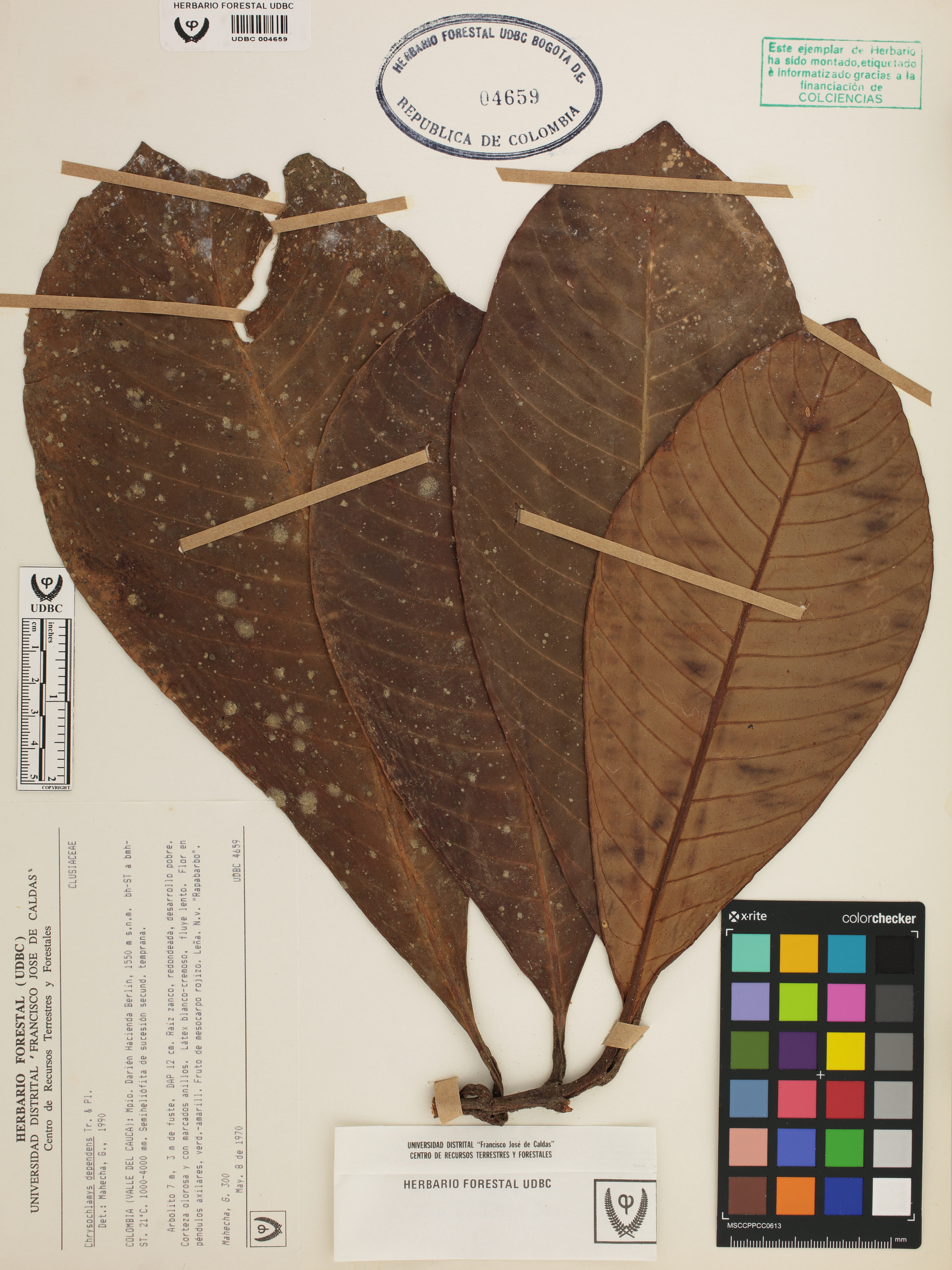 Fotografía del ejemplar Mahecha, G. 300, determinado como Chrysochlamys dependens en el año 1990