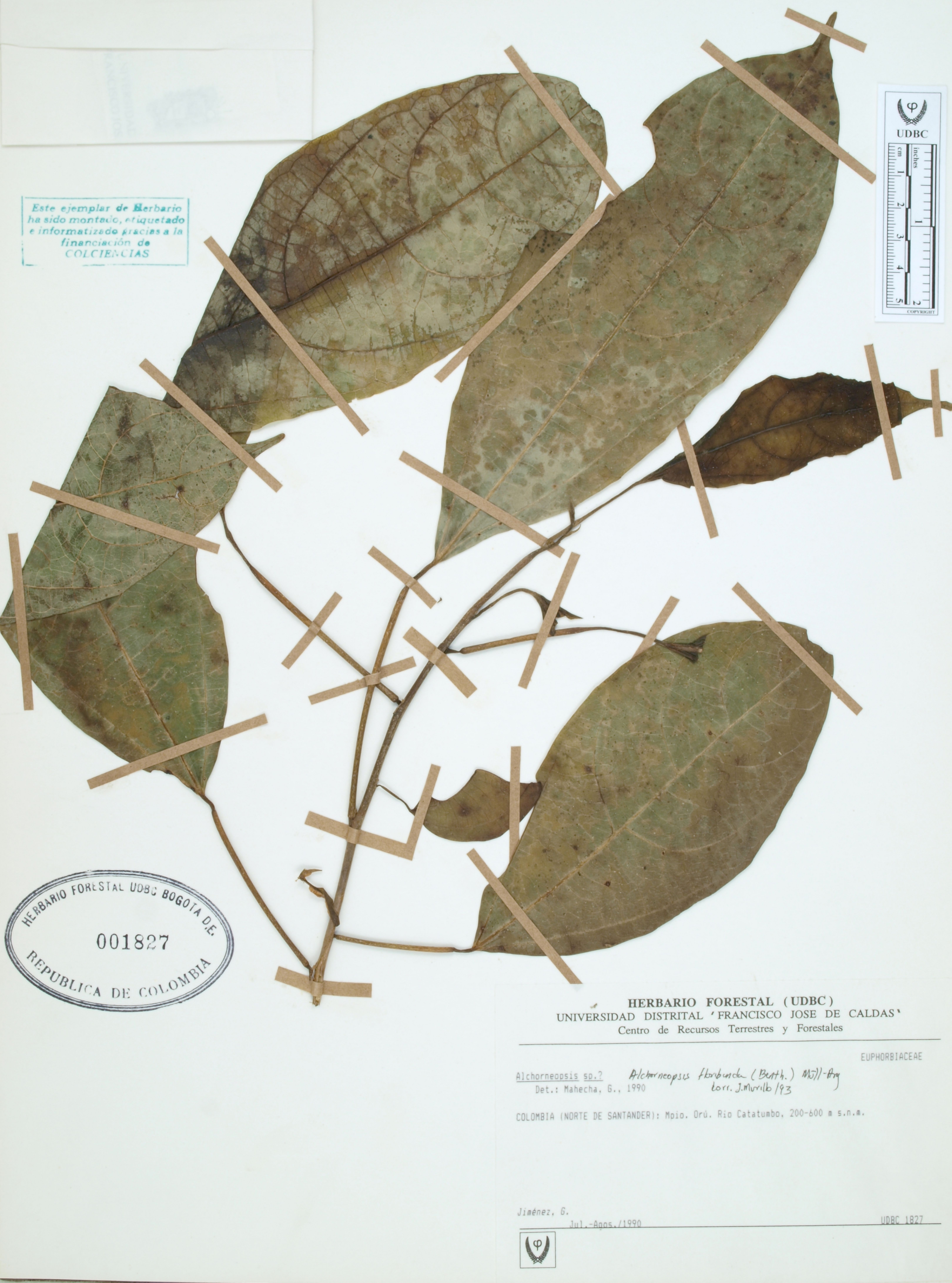 Fotografía del ejemplar Jiménez, G., determinado como Alchorneopsis floribunda en el año 1993