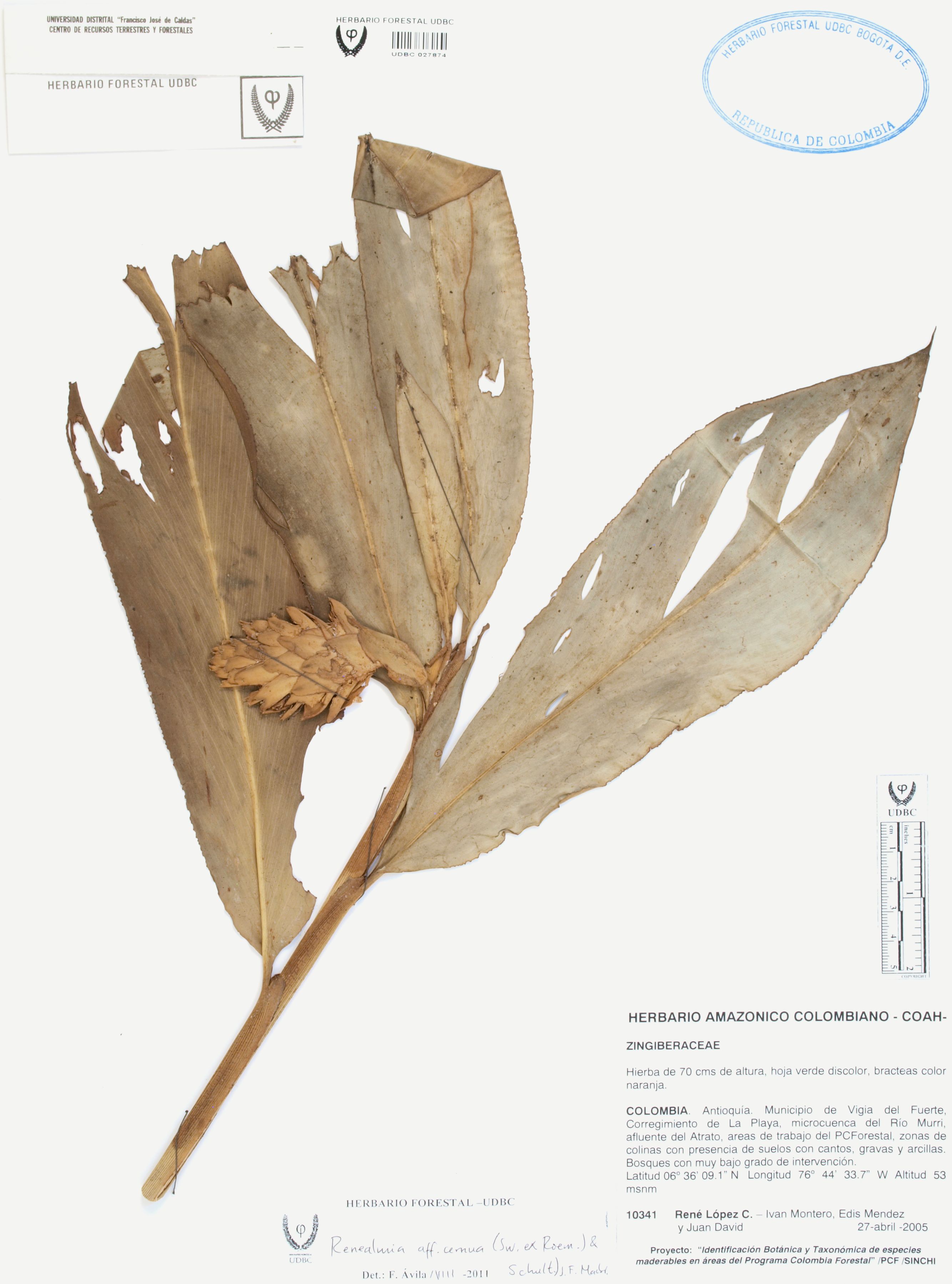 | dc.description | Fotografía del ejemplar López, R. 10341, determinado como Renealmia cernua en el año 2011 | |