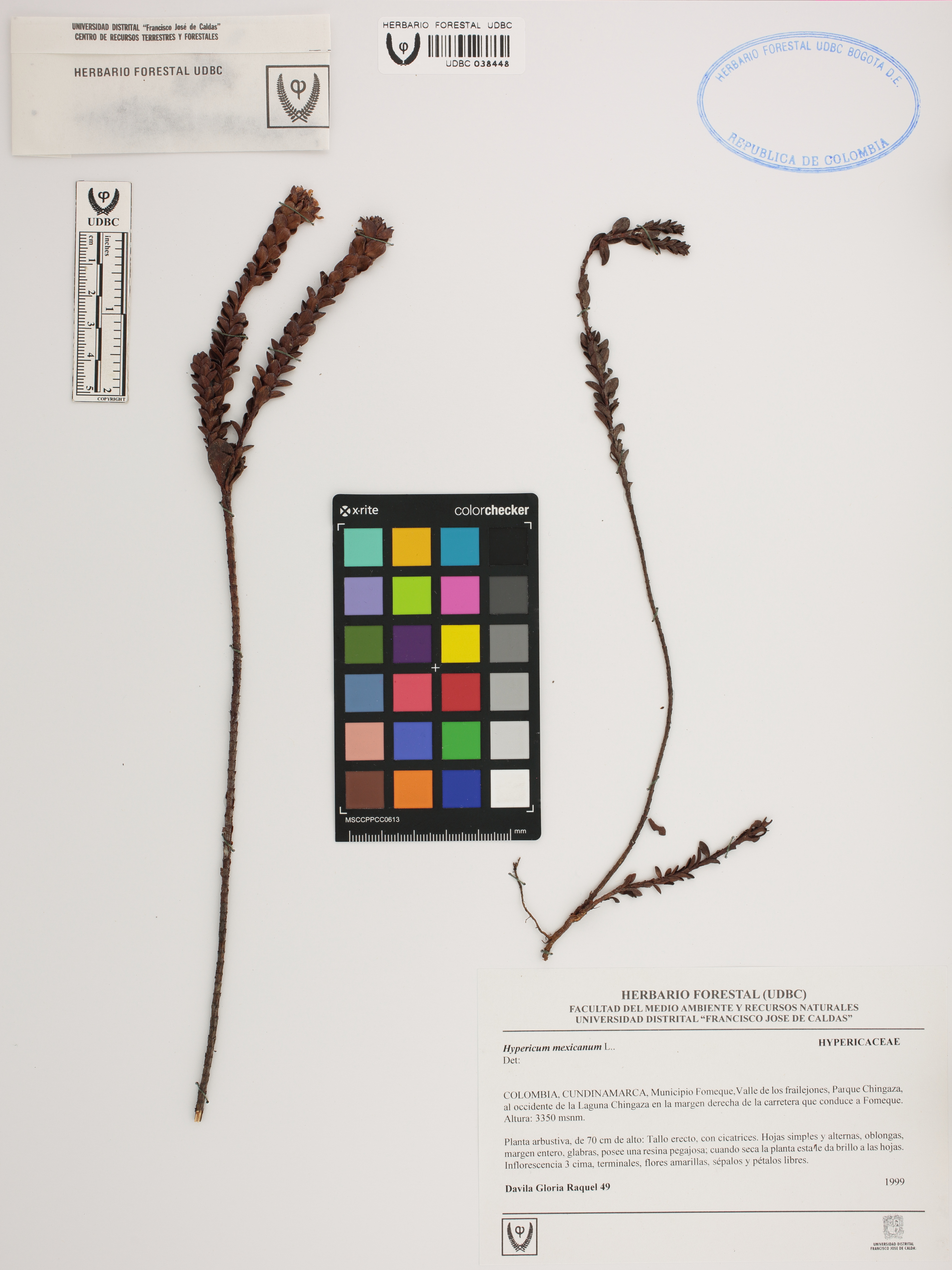 Fotografía del ejemplar Dávila, G. 49, determinado como Hypericum mexicanum