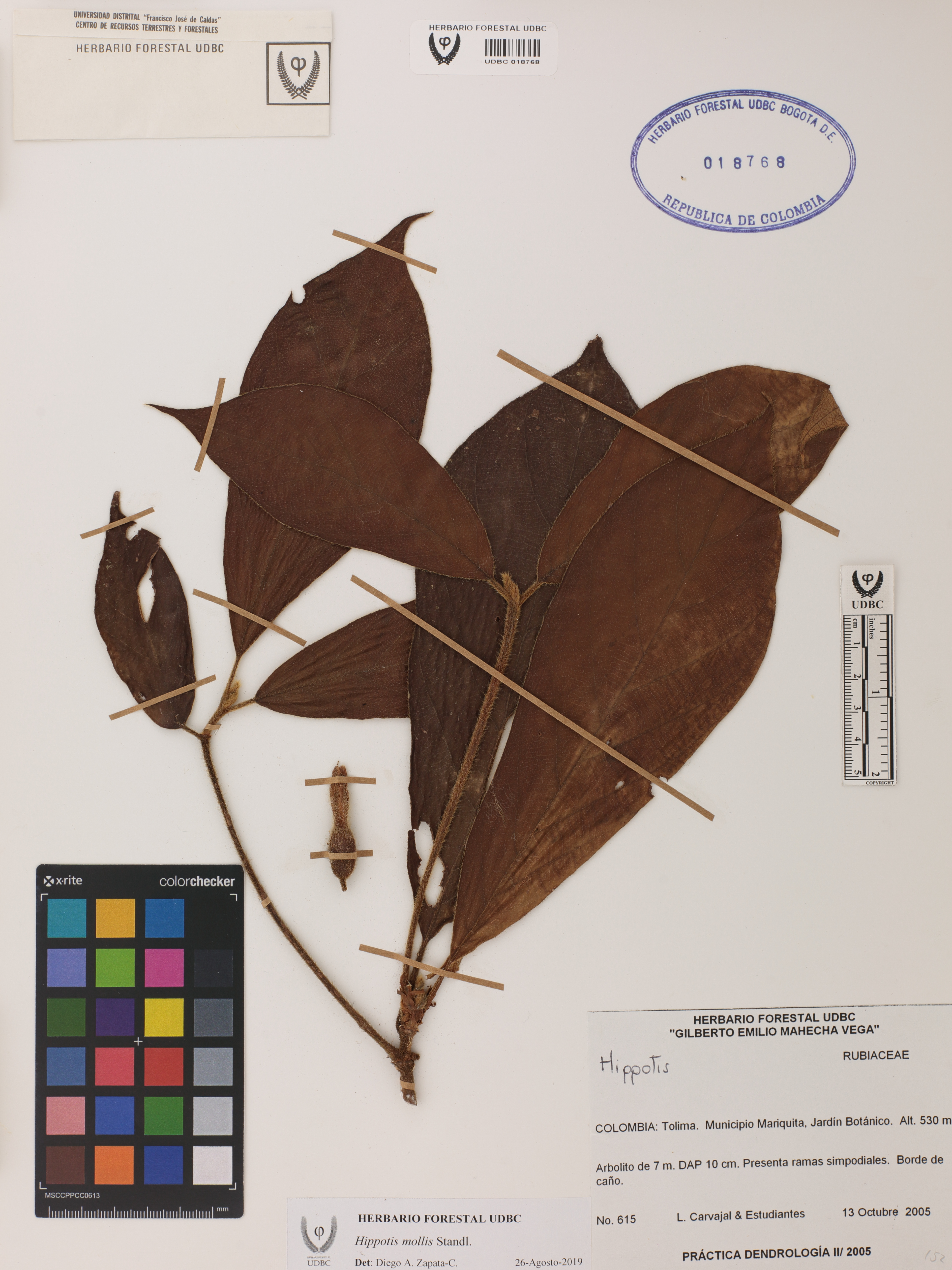 Fotografía del ejemplar Carvajal, L. 615, determinado como Hippotis mollis en el año 2019
