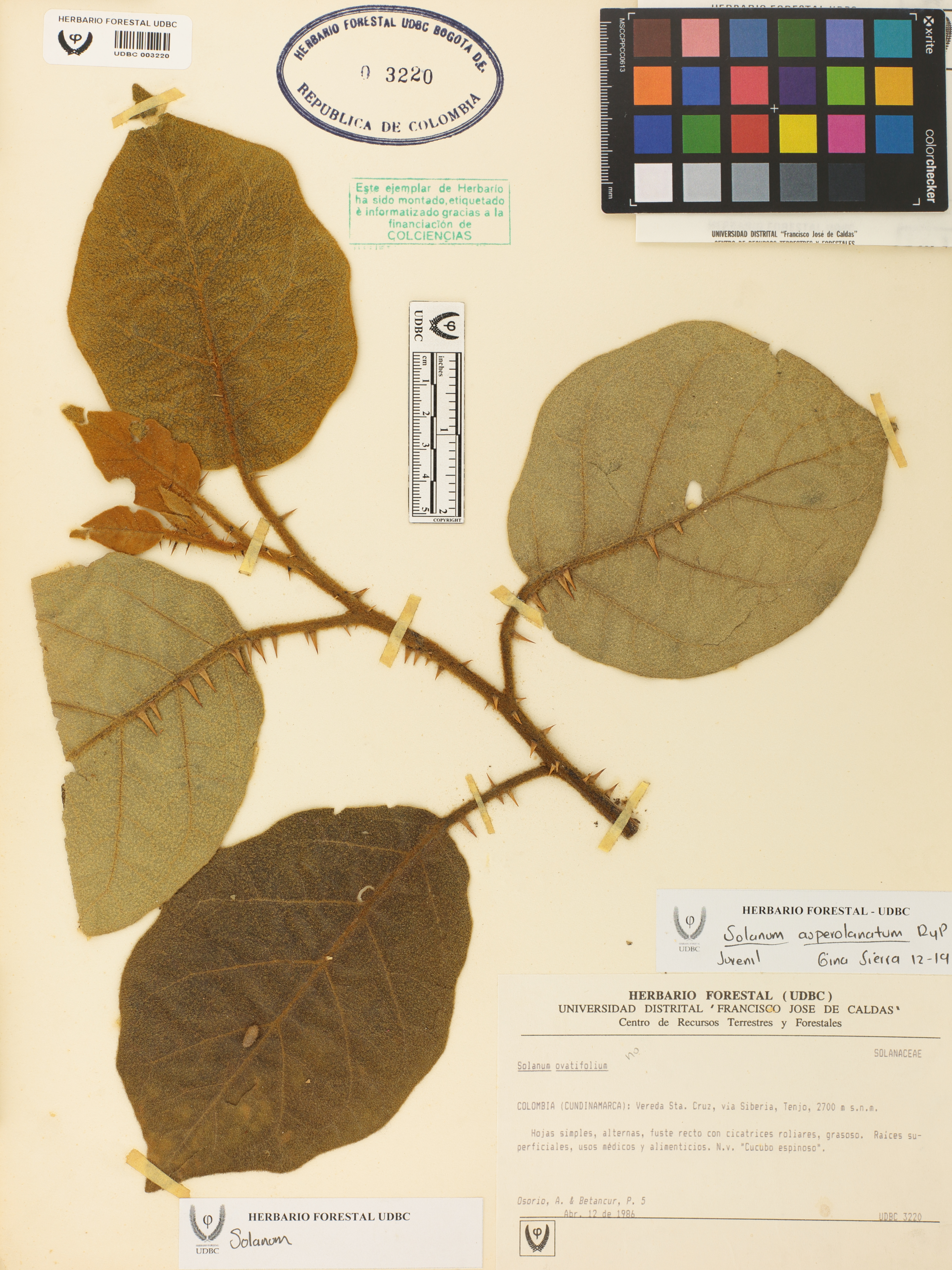 Fotografía del ejemplar Osorio, A. 5, determinado como Solanum asperolanatum en el año 2019