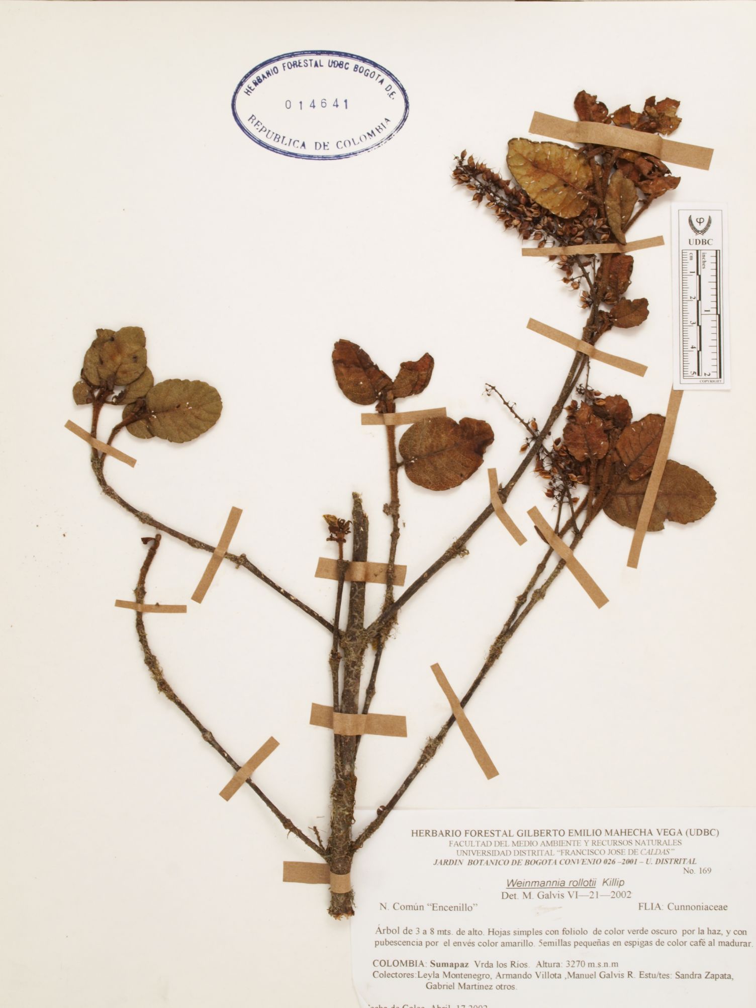 | dc.description | Fotografía del ejemplar Montenegro, L. 169, determinado como Weinmannia rollottii en el año 2002 | |