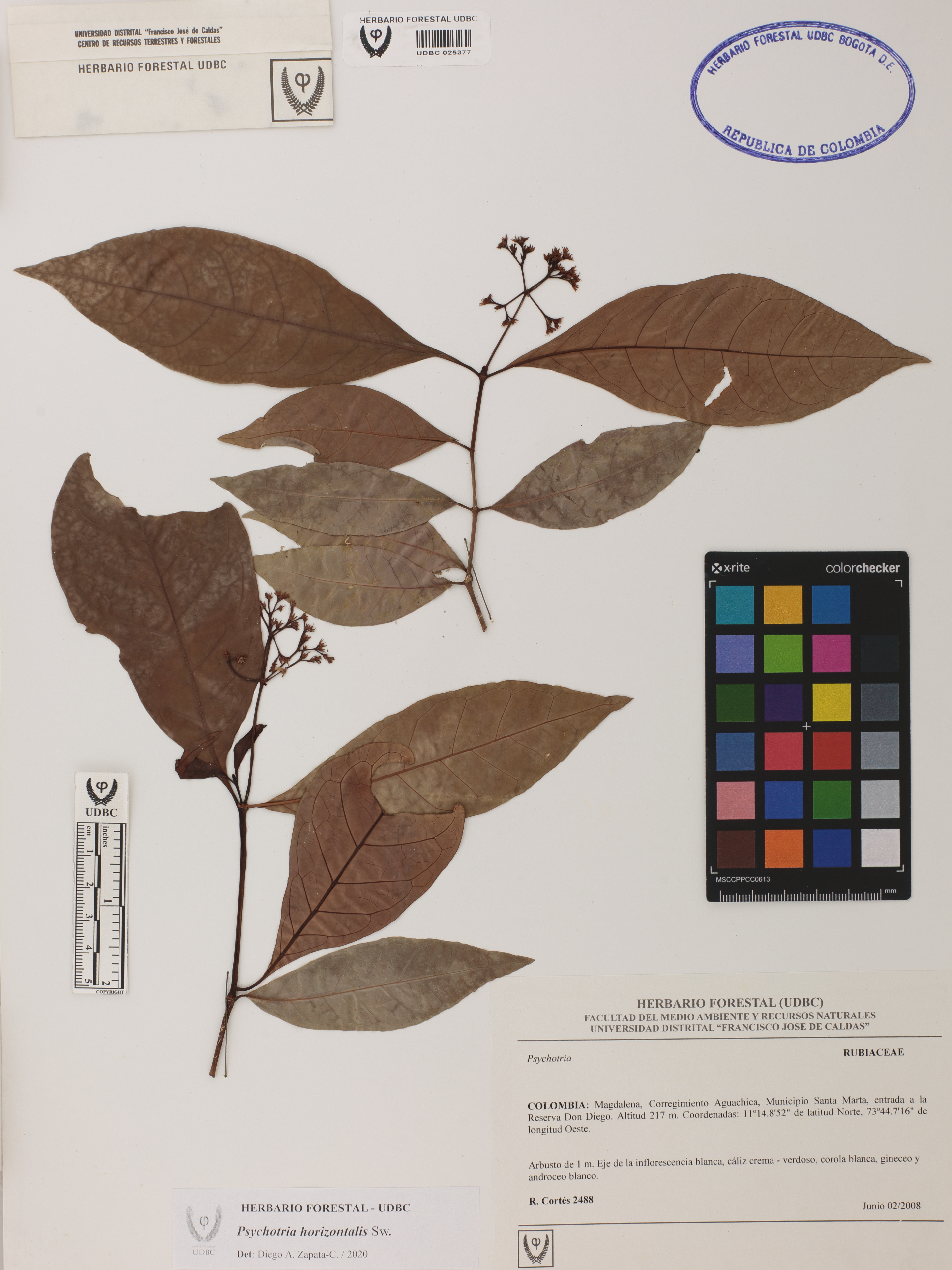 | dc.description | Fotografía del ejemplar Cortés-B., R. 2488, determinado como Psychotria horizontalis en el año 2020 | |