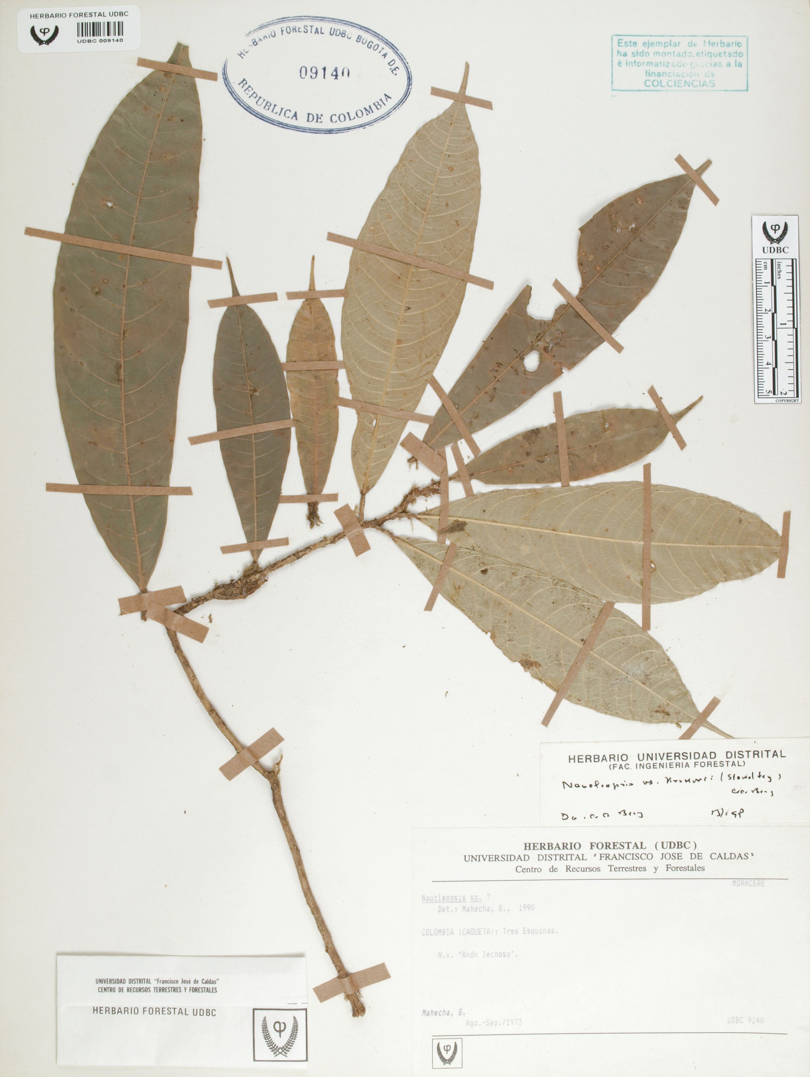 Fotografía del ejemplar Mahecha, G., determinado como Naucleopsis krukovii en el año 1997