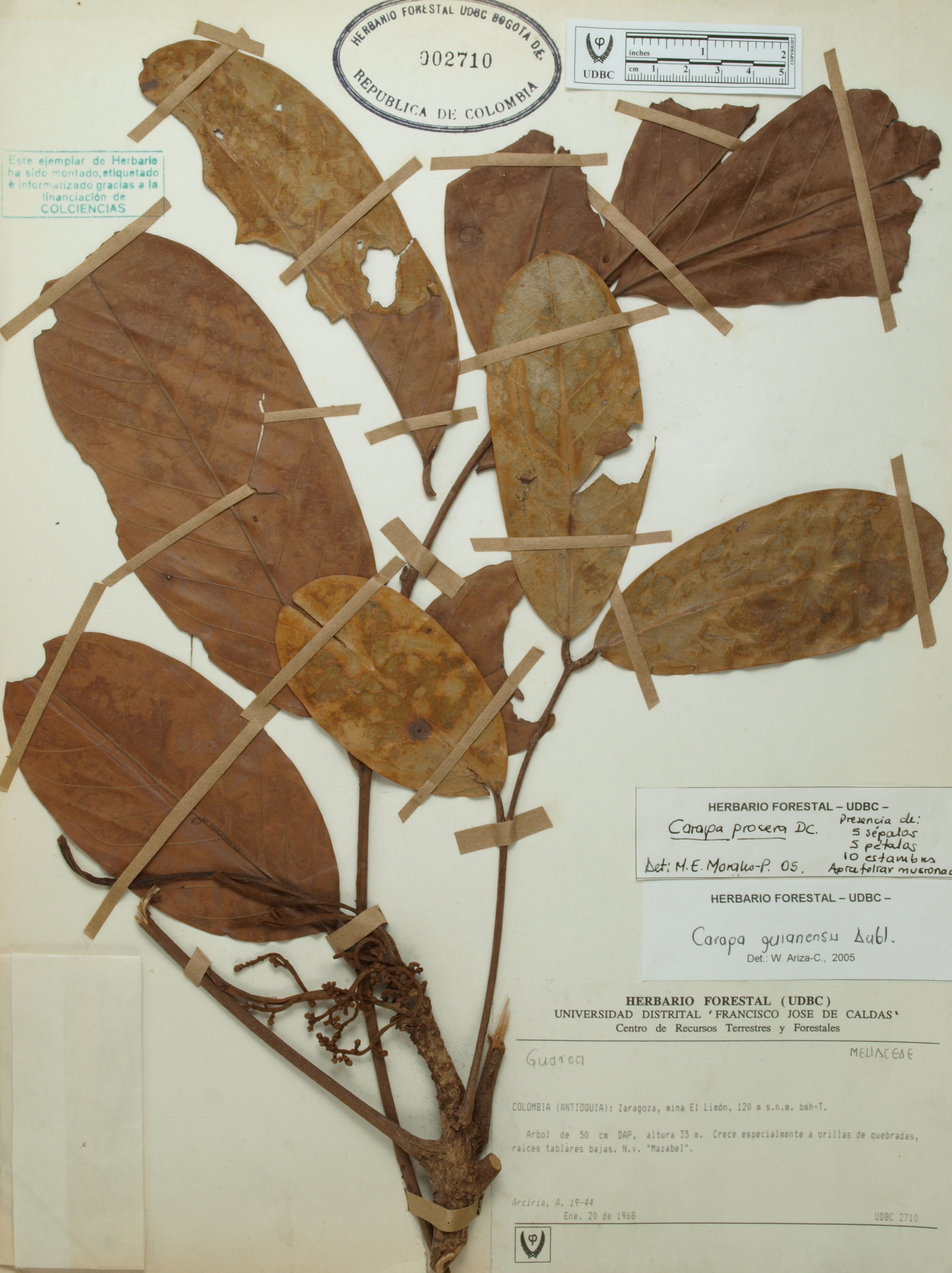 | dc.description | Fotografía del ejemplar Arciria, A., determinado como Carapa procera en el año 2005 | |