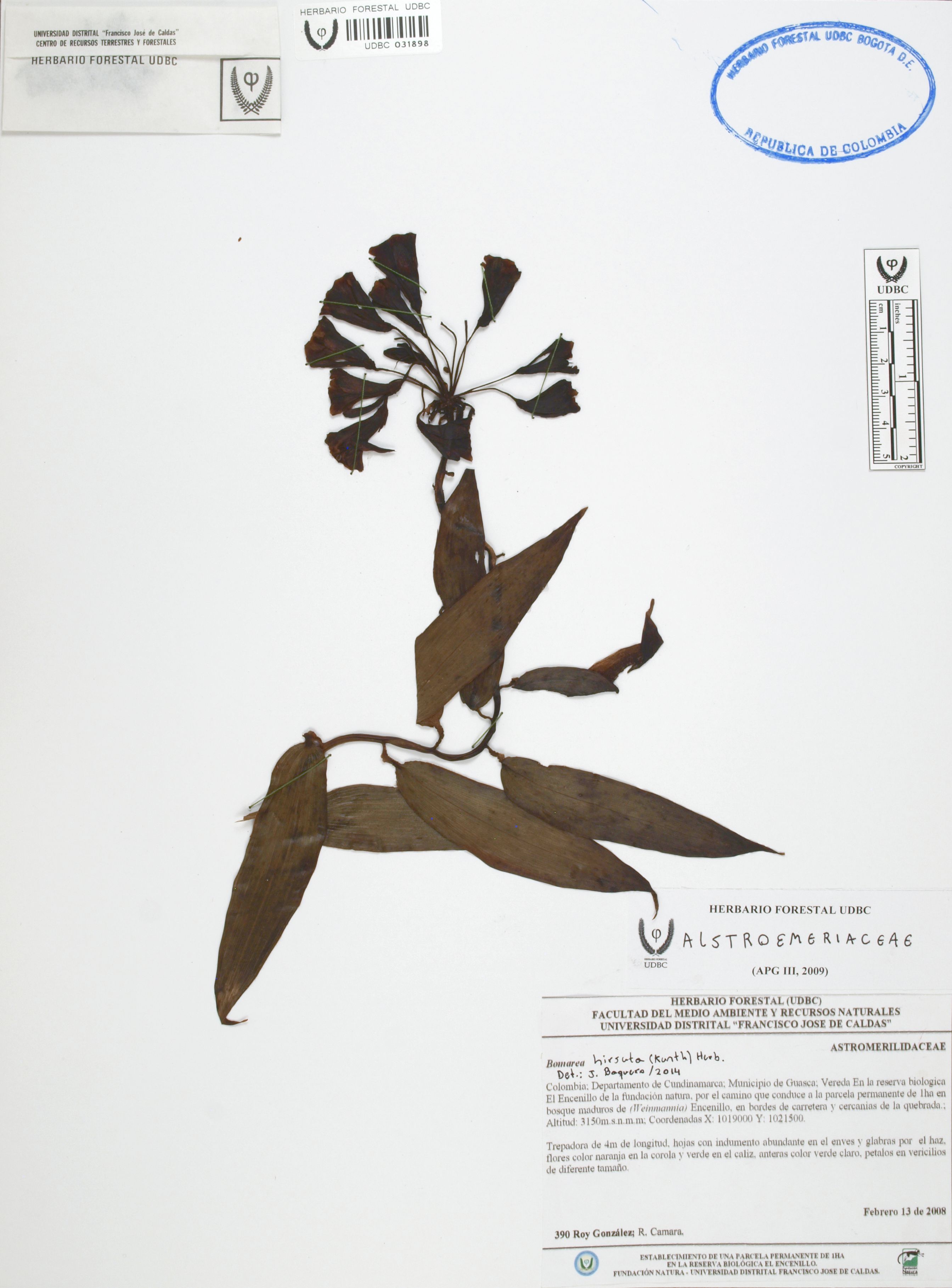 Fotografía del ejemplar González, R. 390, determinado como Bomarea hirsuta en el año 2014