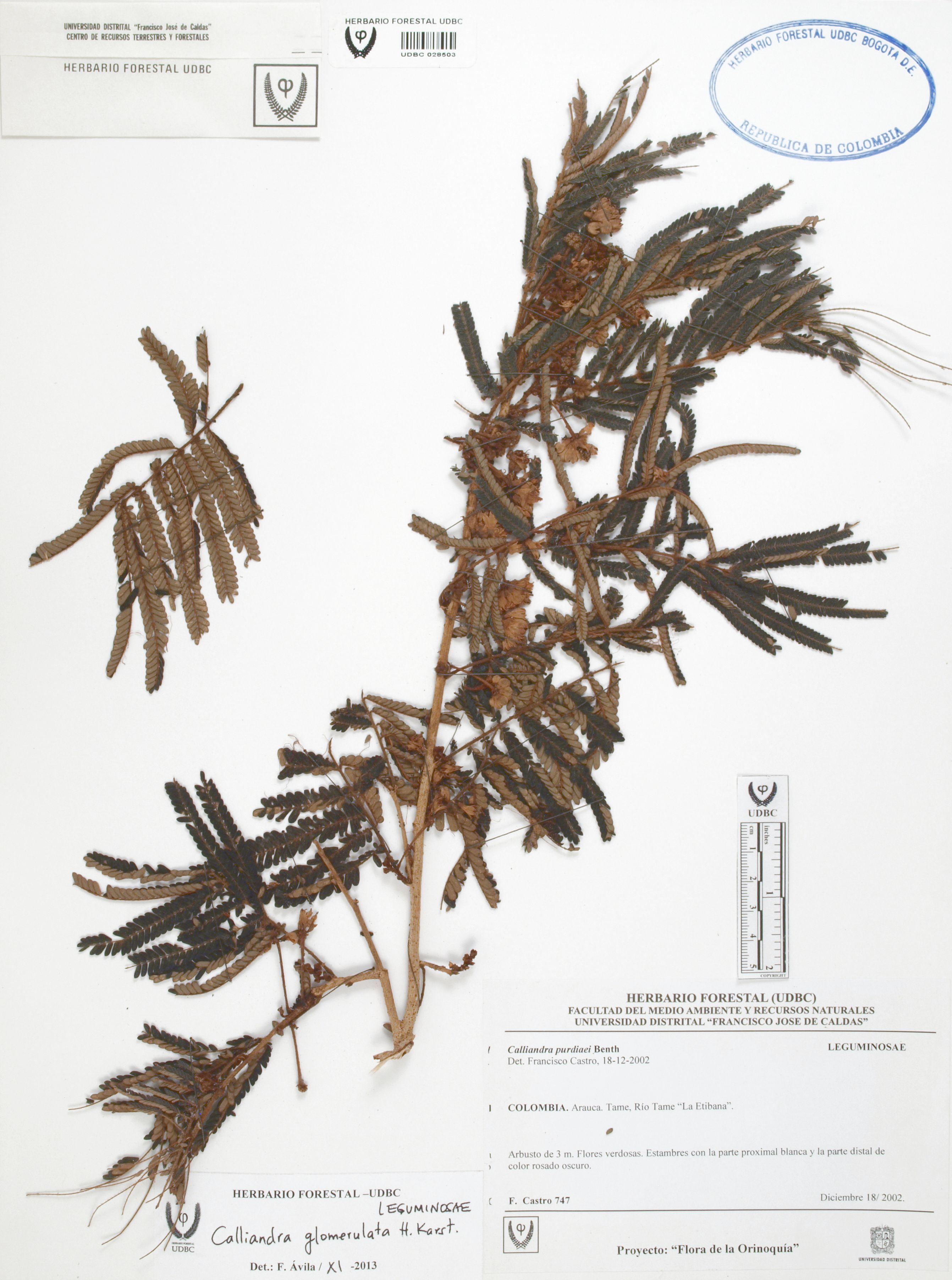 Fotografía del ejemplar Castro, F. 747, determinado como Calliandra glomerulata en el año 2013