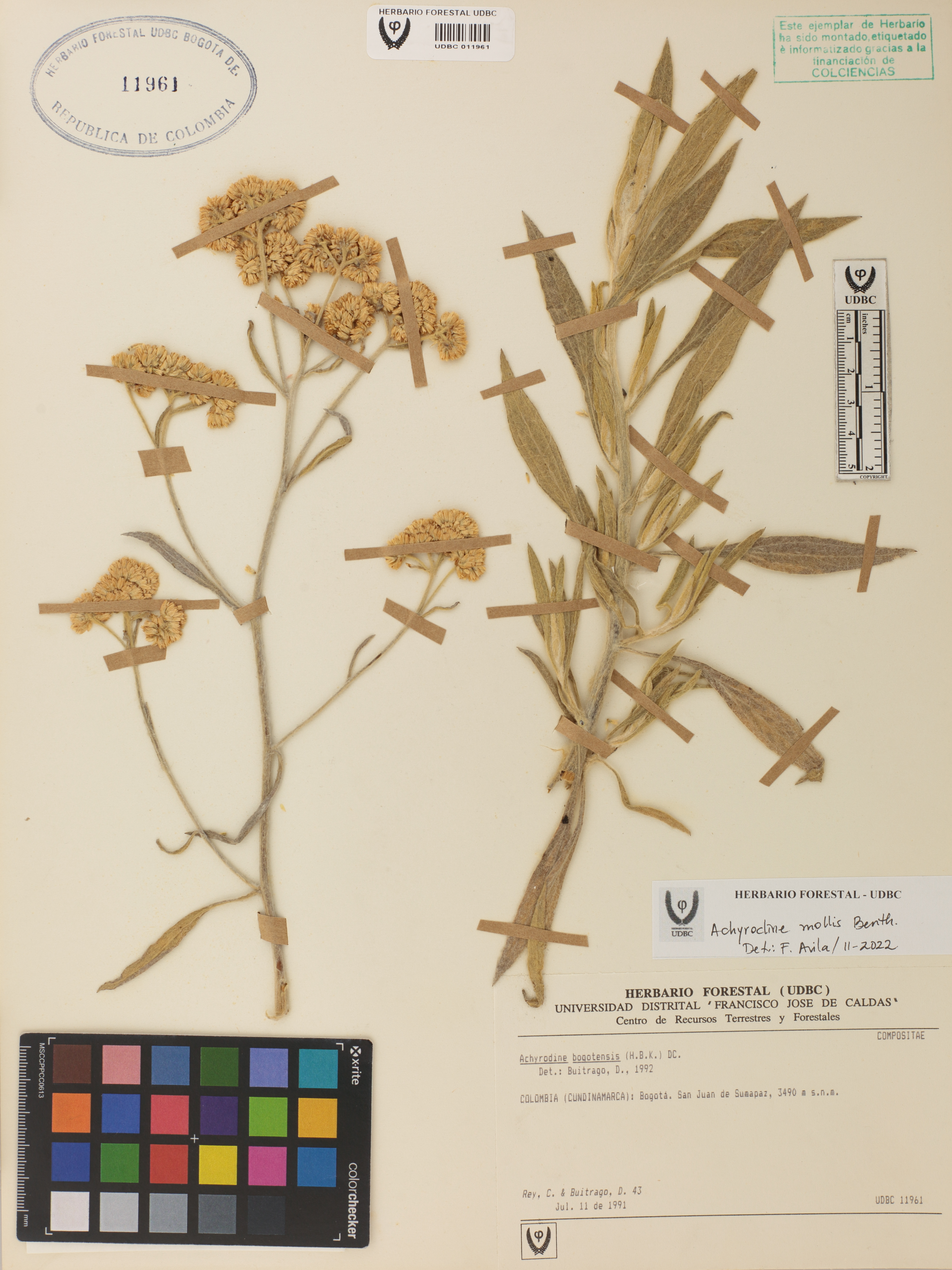 Fotografía del ejemplar Rey, C. 43, determinado como Achyrocline mollis en el año 2022