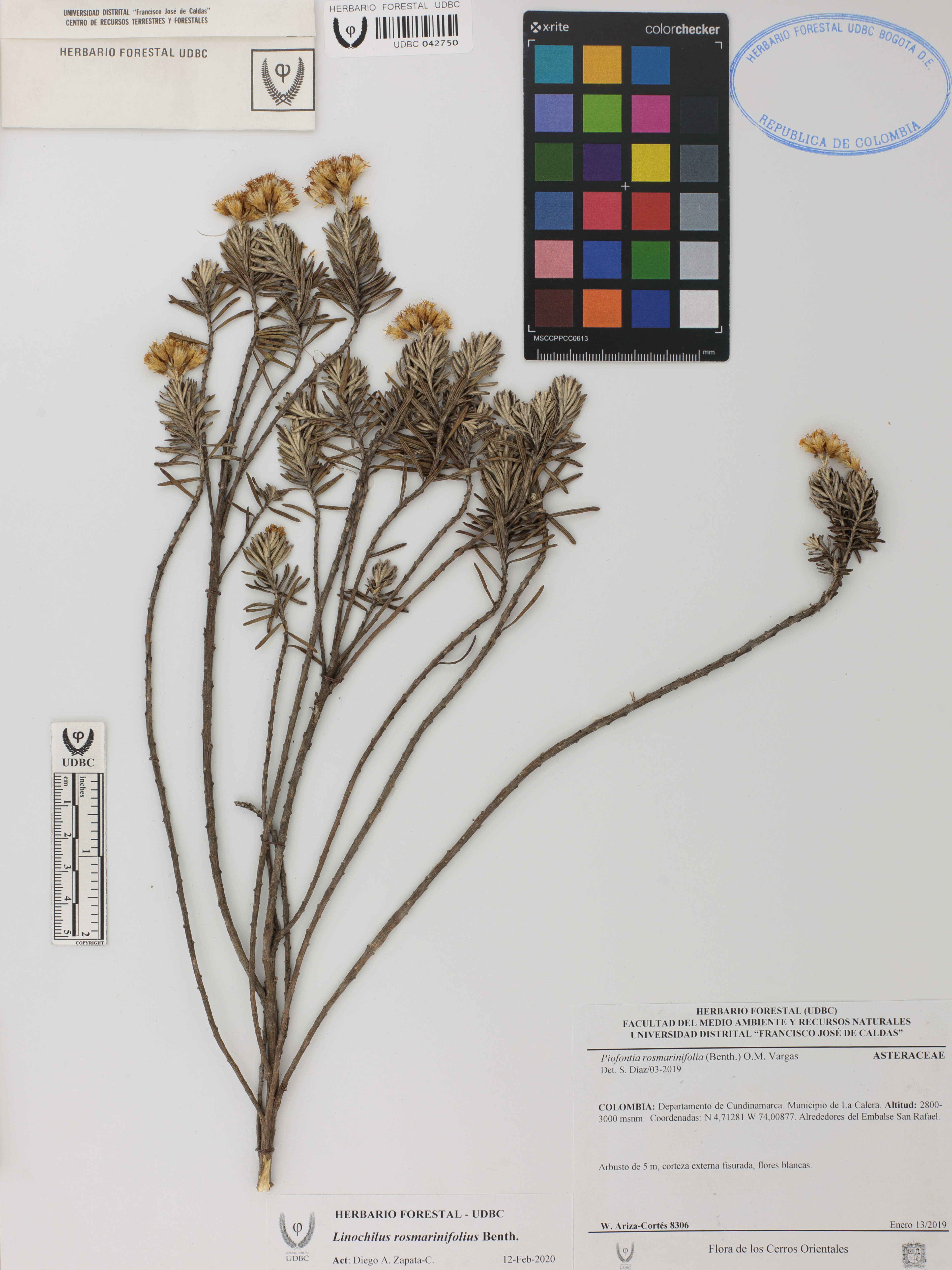 Fotografía del ejemplar Ariza-C., W. 8306, determinado como Linochilus rosmarinifolius en el año 2020