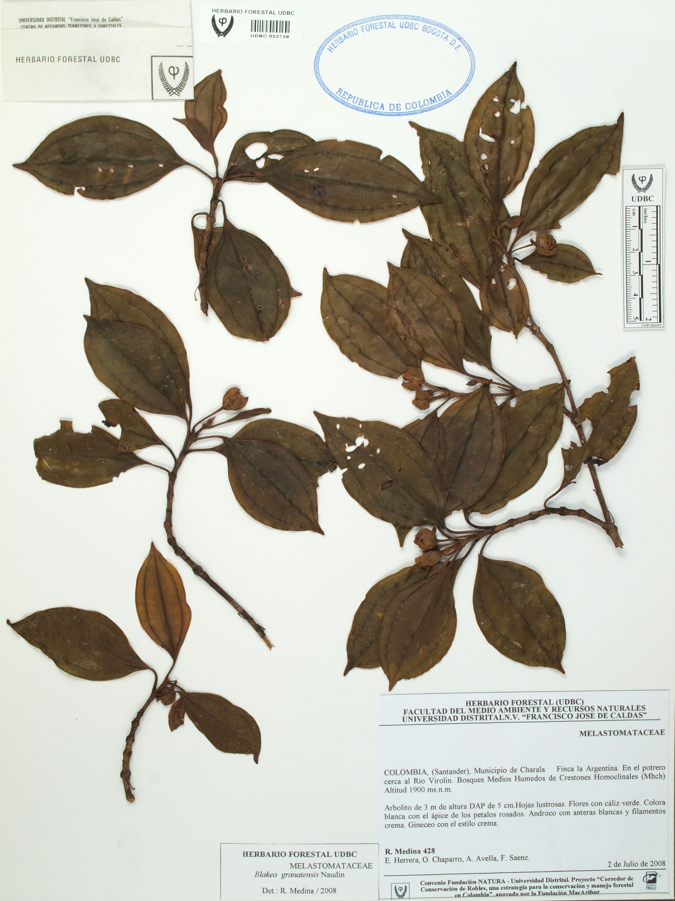 Fotografía del ejemplar Medina, R. 428, determinado como Blakea granatensis en el año 2008