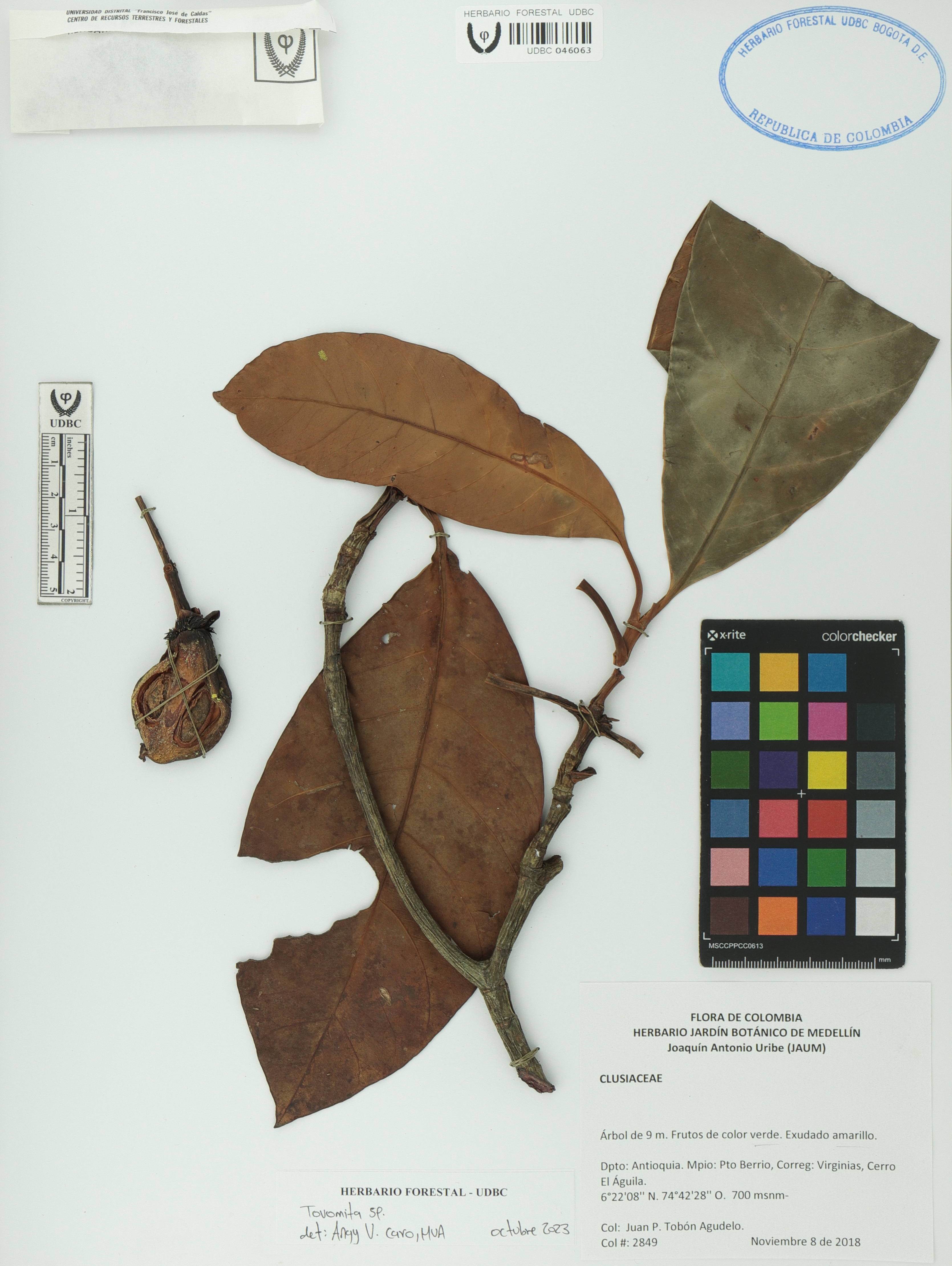 | dc.description | Fotografía del ejemplar Tobón-Agudelo, J. 2849, determinado como Tovomita sp. en el año 2023 | |