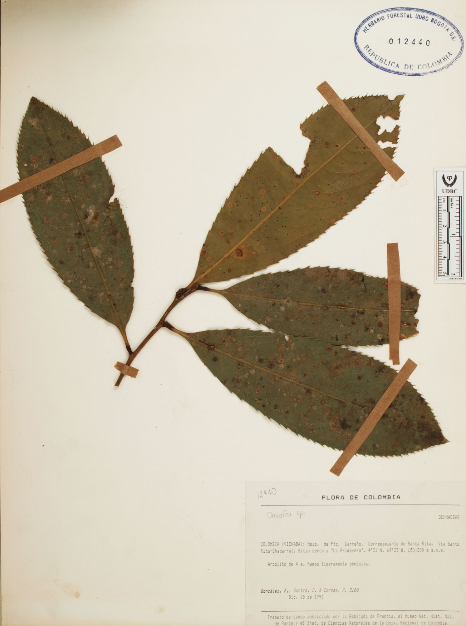 Fotografía del ejemplar González, F. 3100, determinado como Ochnaceae