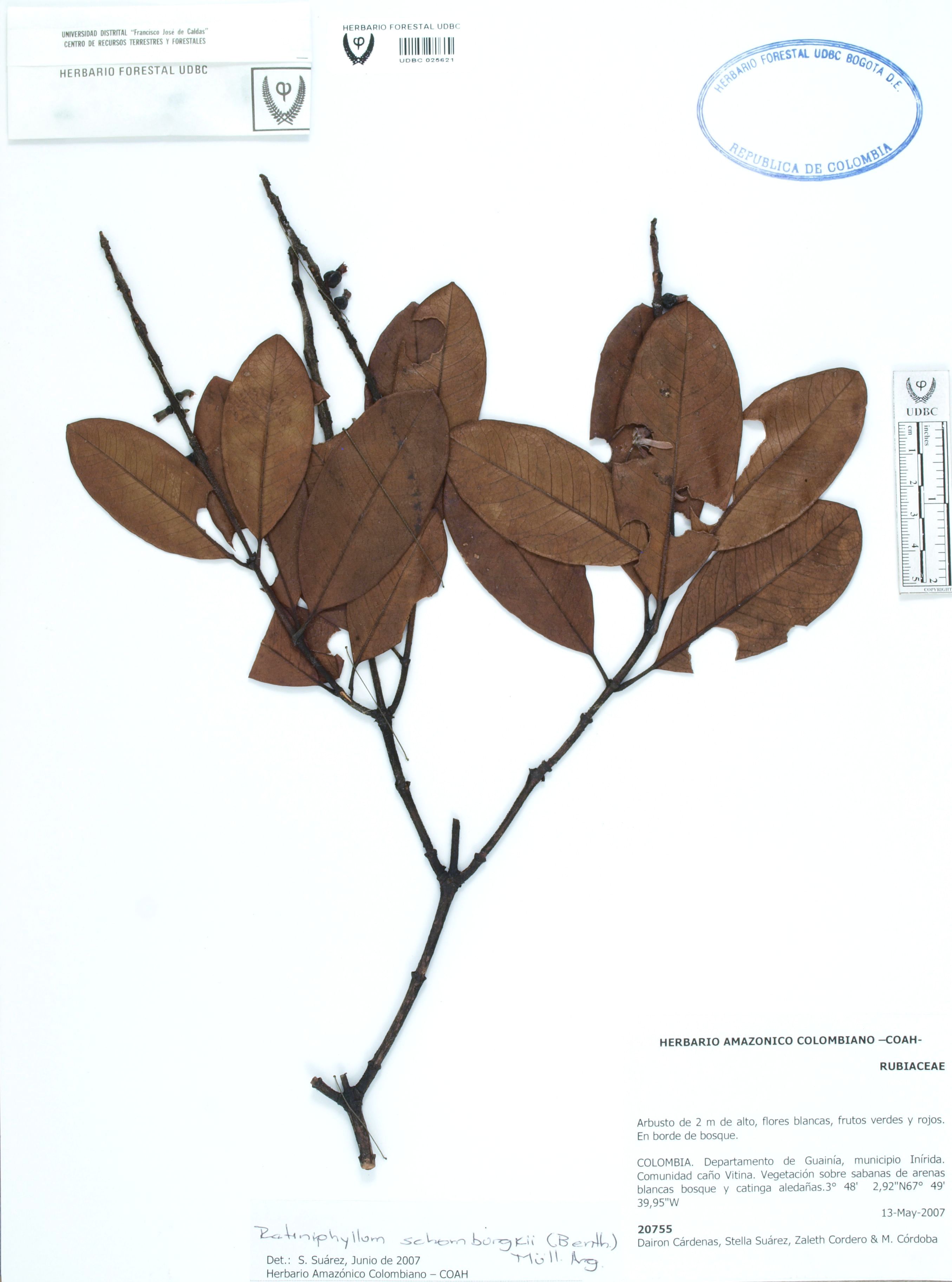 | dc.description | Fotografía del ejemplar Cárdenas, D. 20755, determinado como Retiniphyllum schomburgkii en el año 2007 | |
