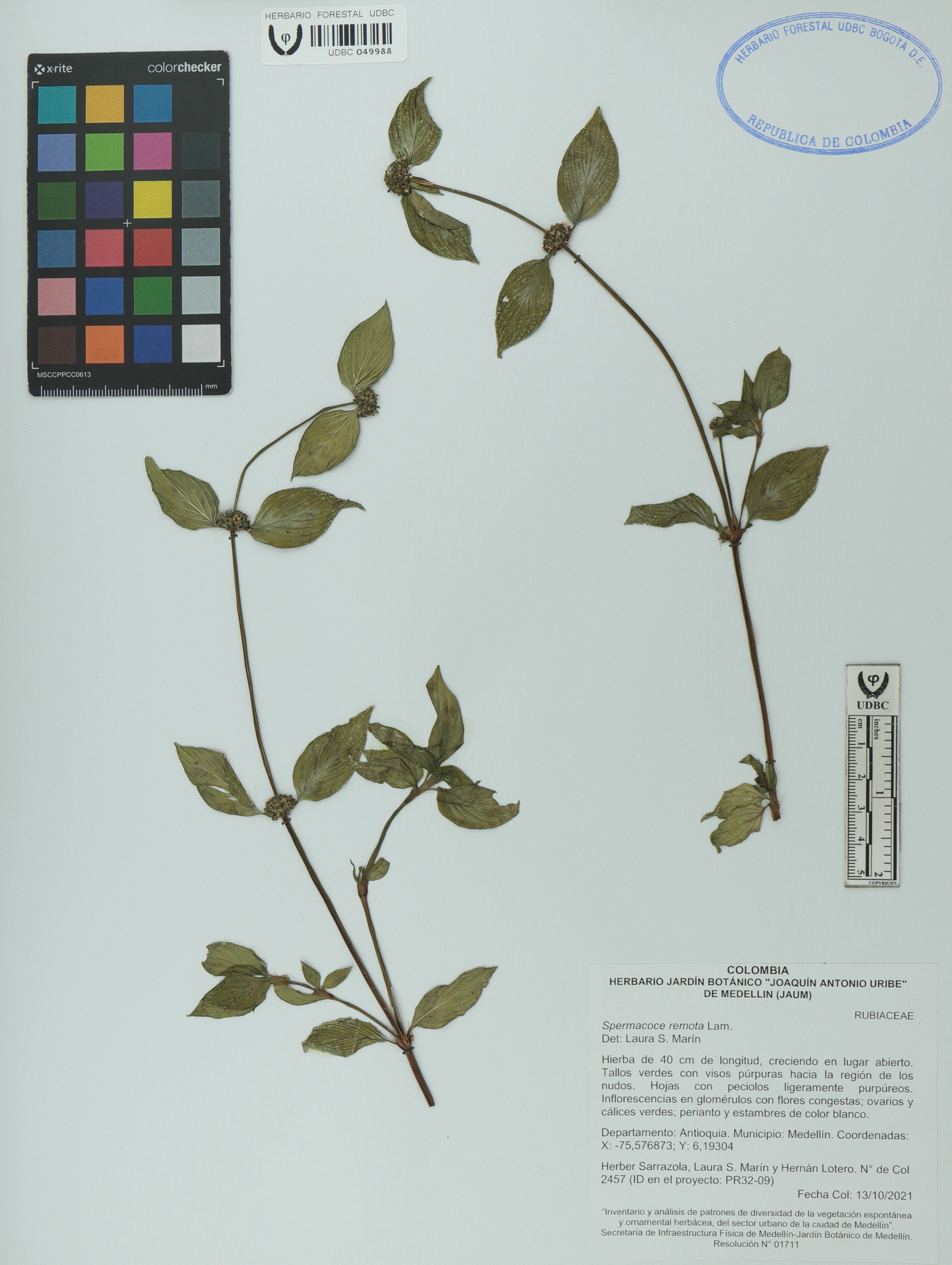 | dc.description | Fotografía del ejemplar Sarrazola, H. 2457, determinado como Spermacoce remota | |