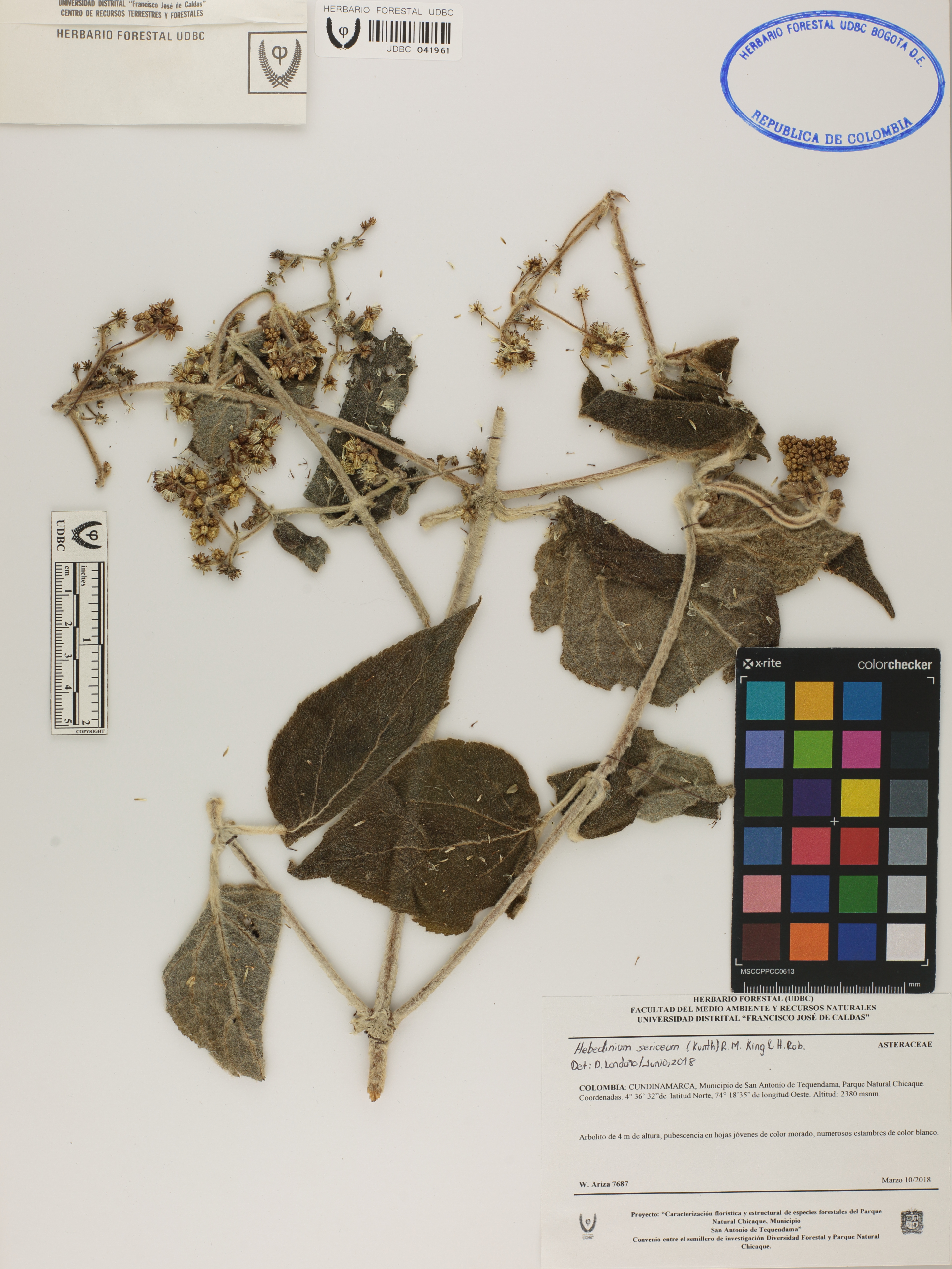 Fotografía del ejemplar Ariza, W. 7687, determinado como Hebeclinium sericeum en el año 2018