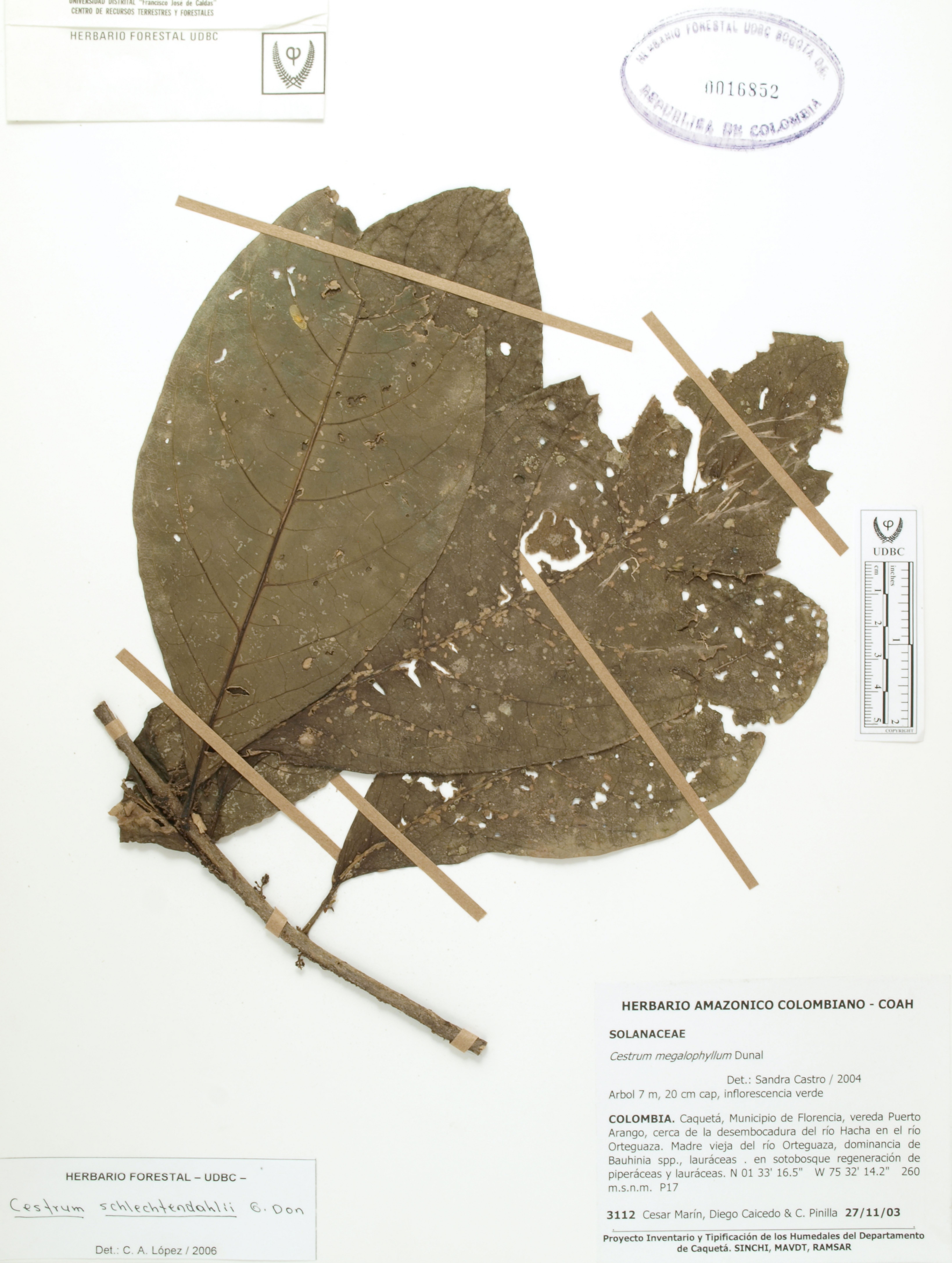 Fotografía del ejemplar Marín, C. 3112, determinado como Cestrum schlechtendalii en el año 2006
