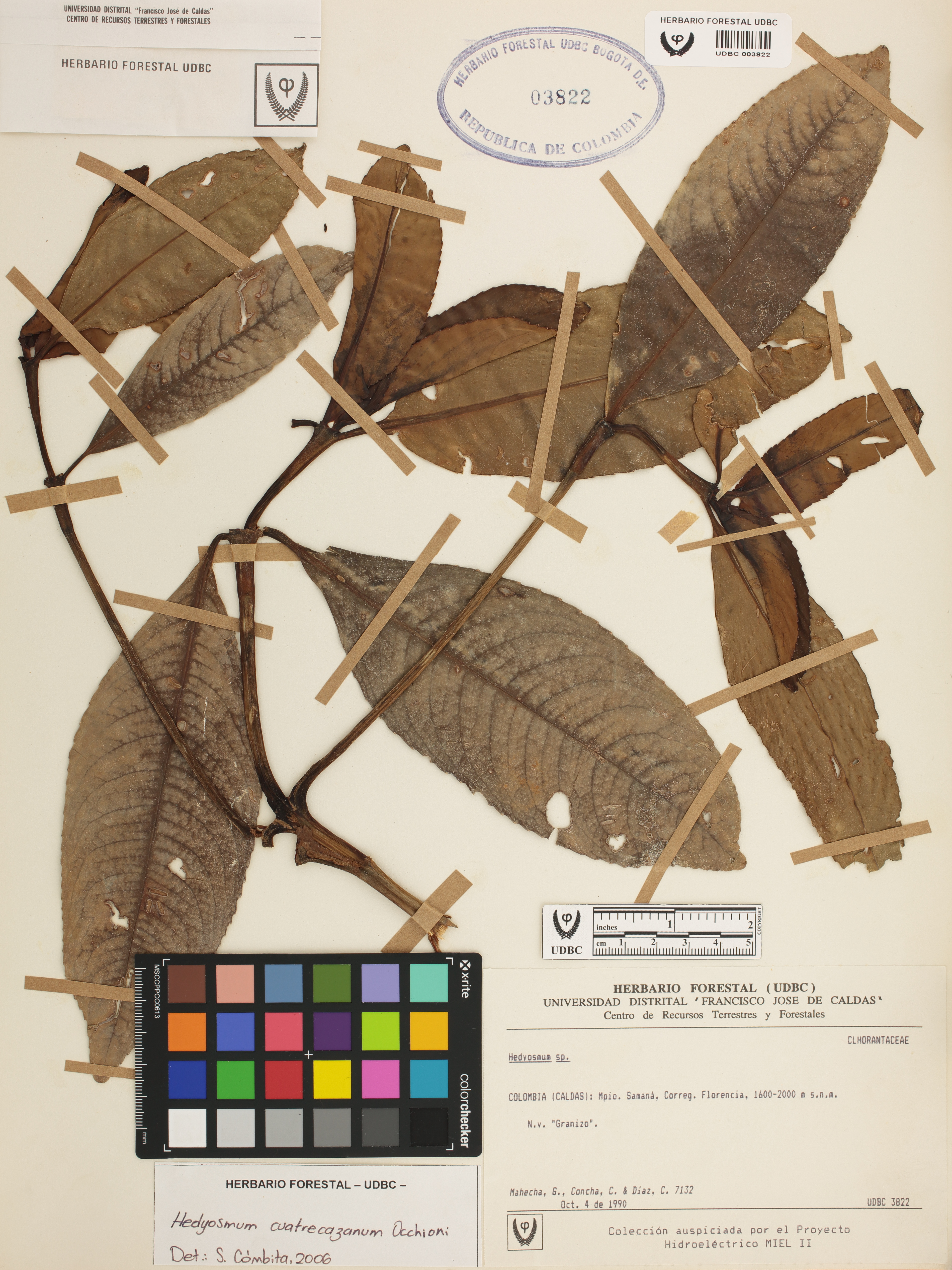 Fotografía del ejemplar Mahecha, G. 7132, determinado como Hedyosmum cuatrecazanum en el año 2006