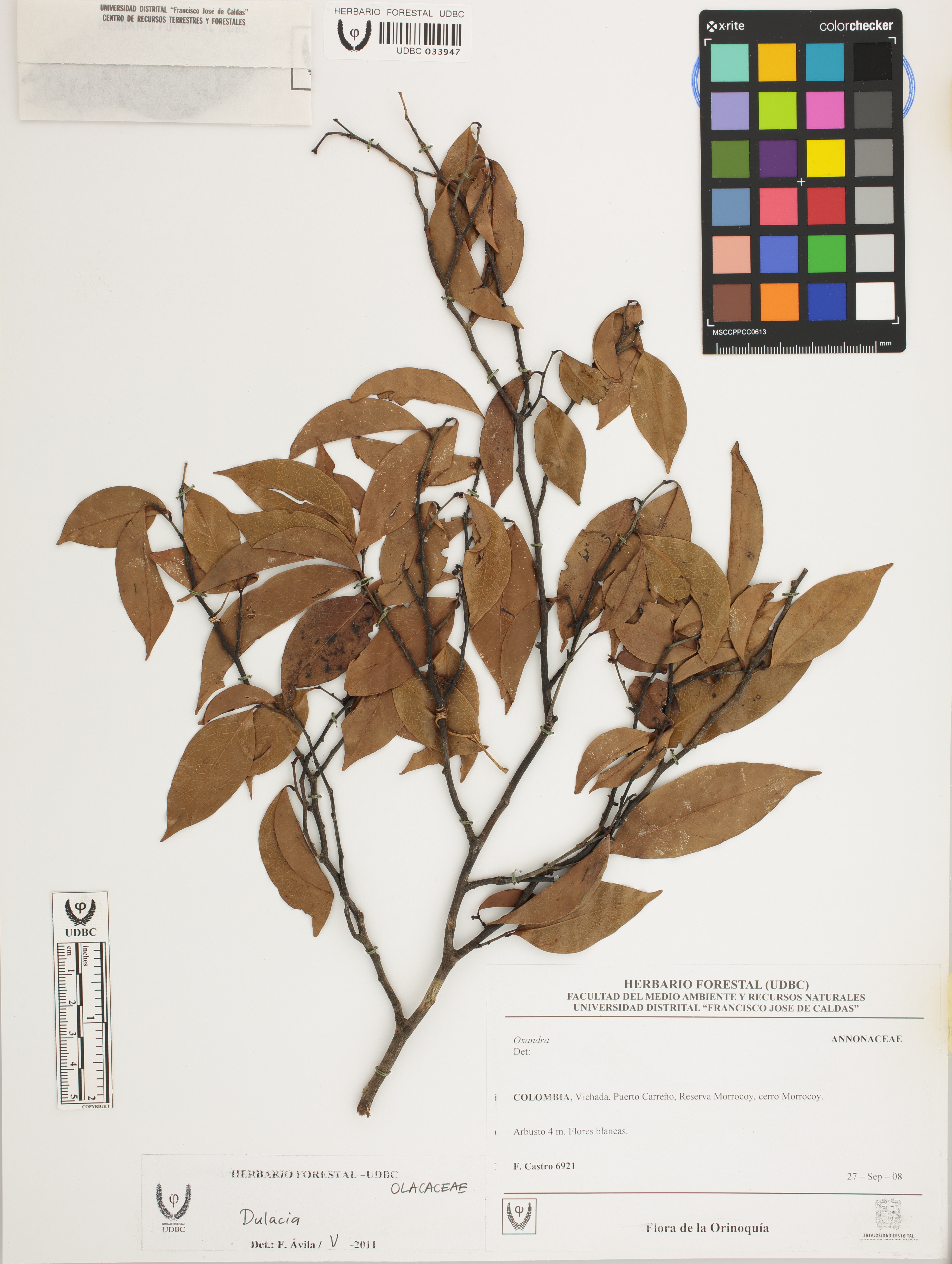 | dc.description | Fotografía del ejemplar Castro, F. 6921, determinado como Dulacia sp. en el año 2011 | |