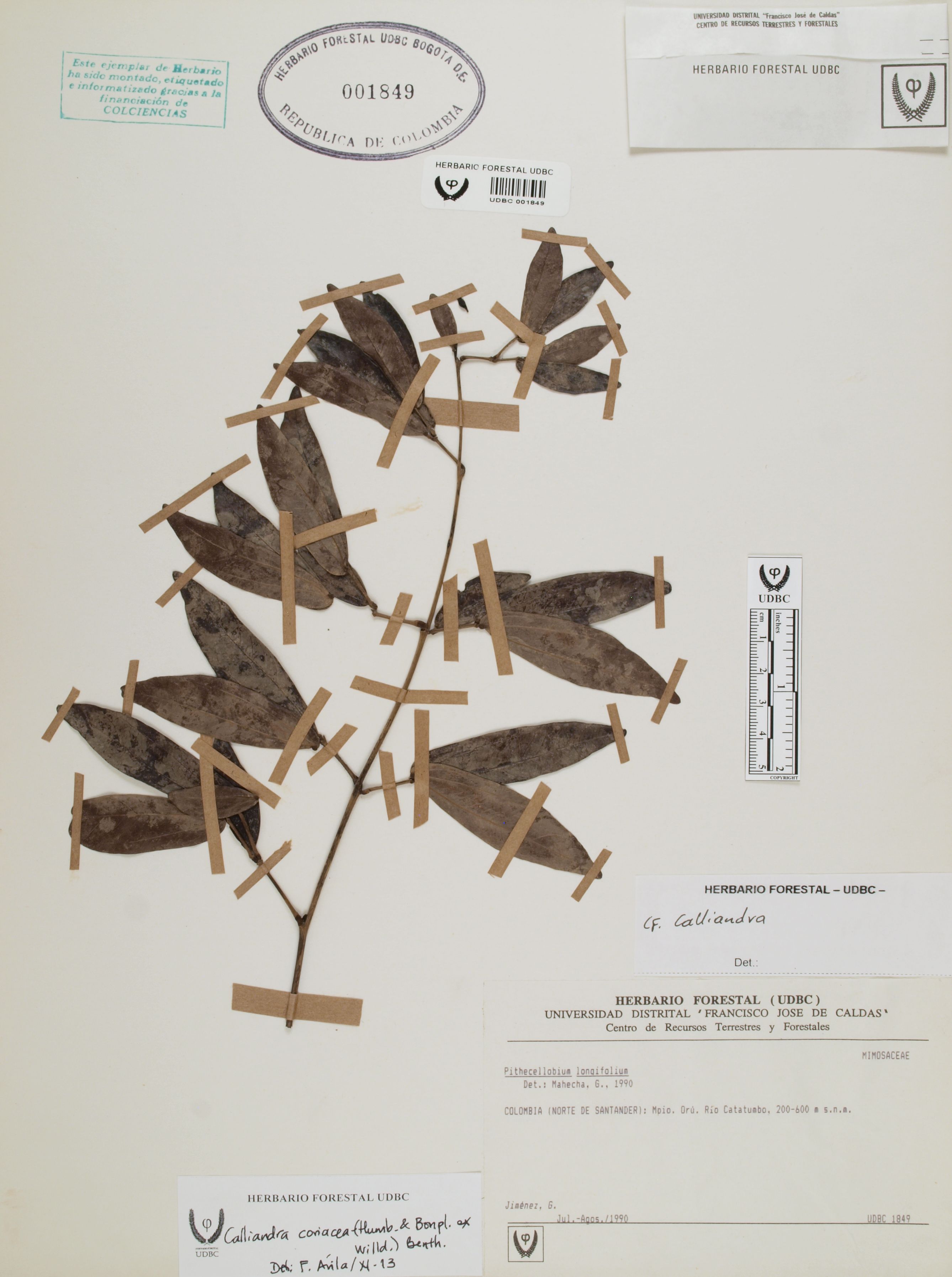 Fotografía del ejemplar Jiménez, G., determinado como Calliandra coriacea en el año 2013