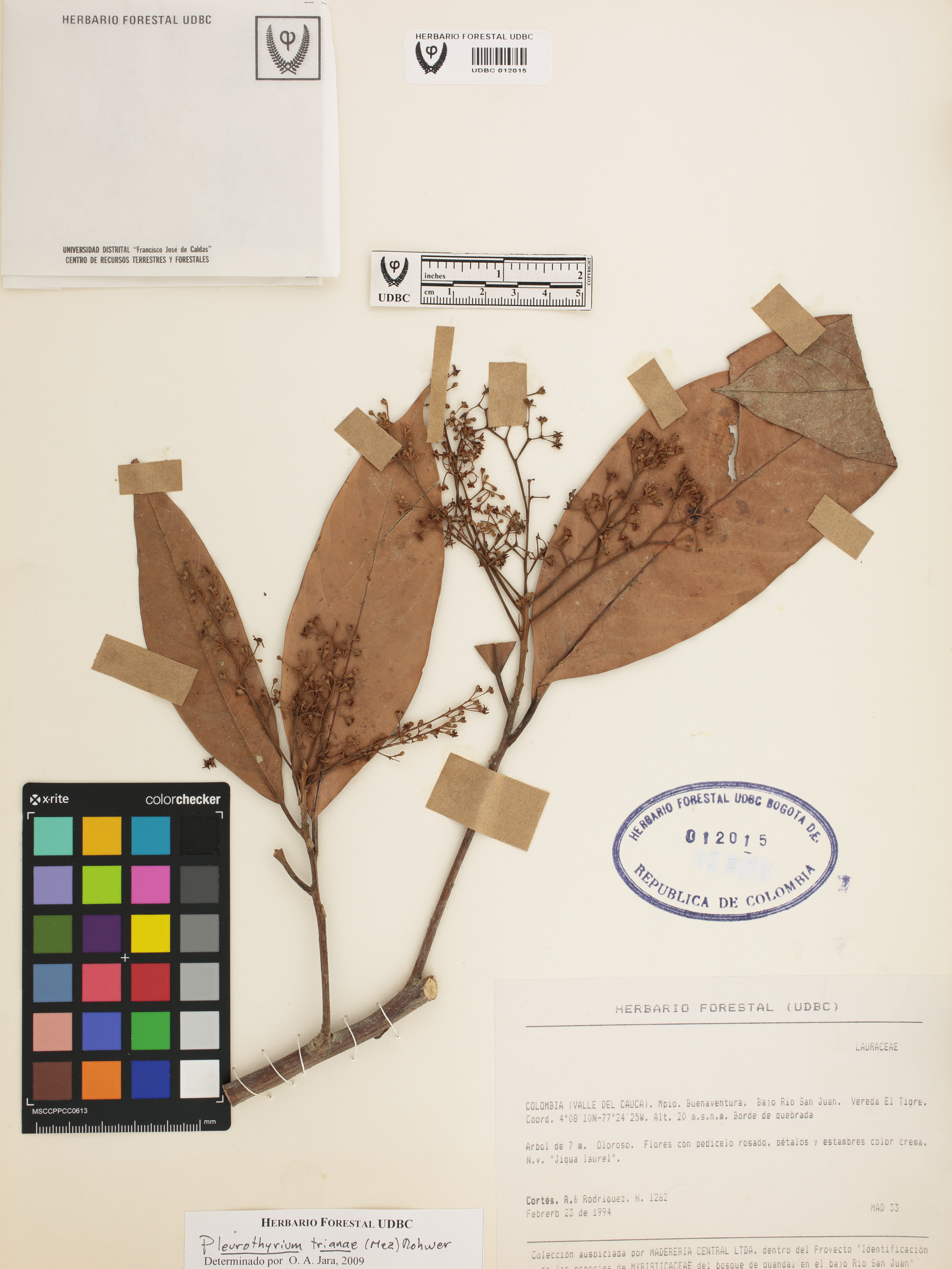 Fotografía del ejemplar Cortés, R. 1262, determinado como Pleurothyrium trianae en el año 2009
