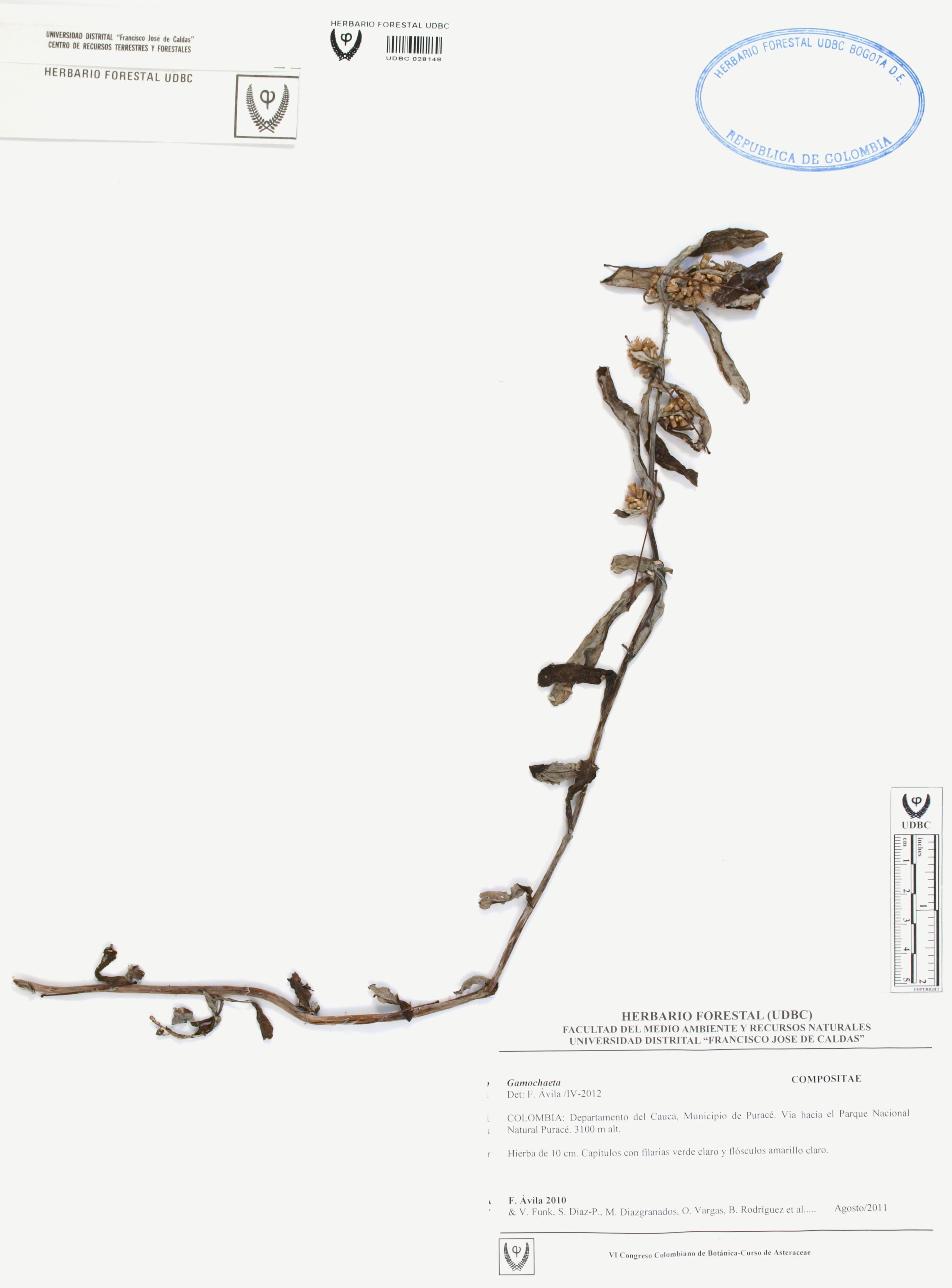 Fotografía del ejemplar Ávila, F. 2010, determinado como Gamochaeta sp. en el año 2012