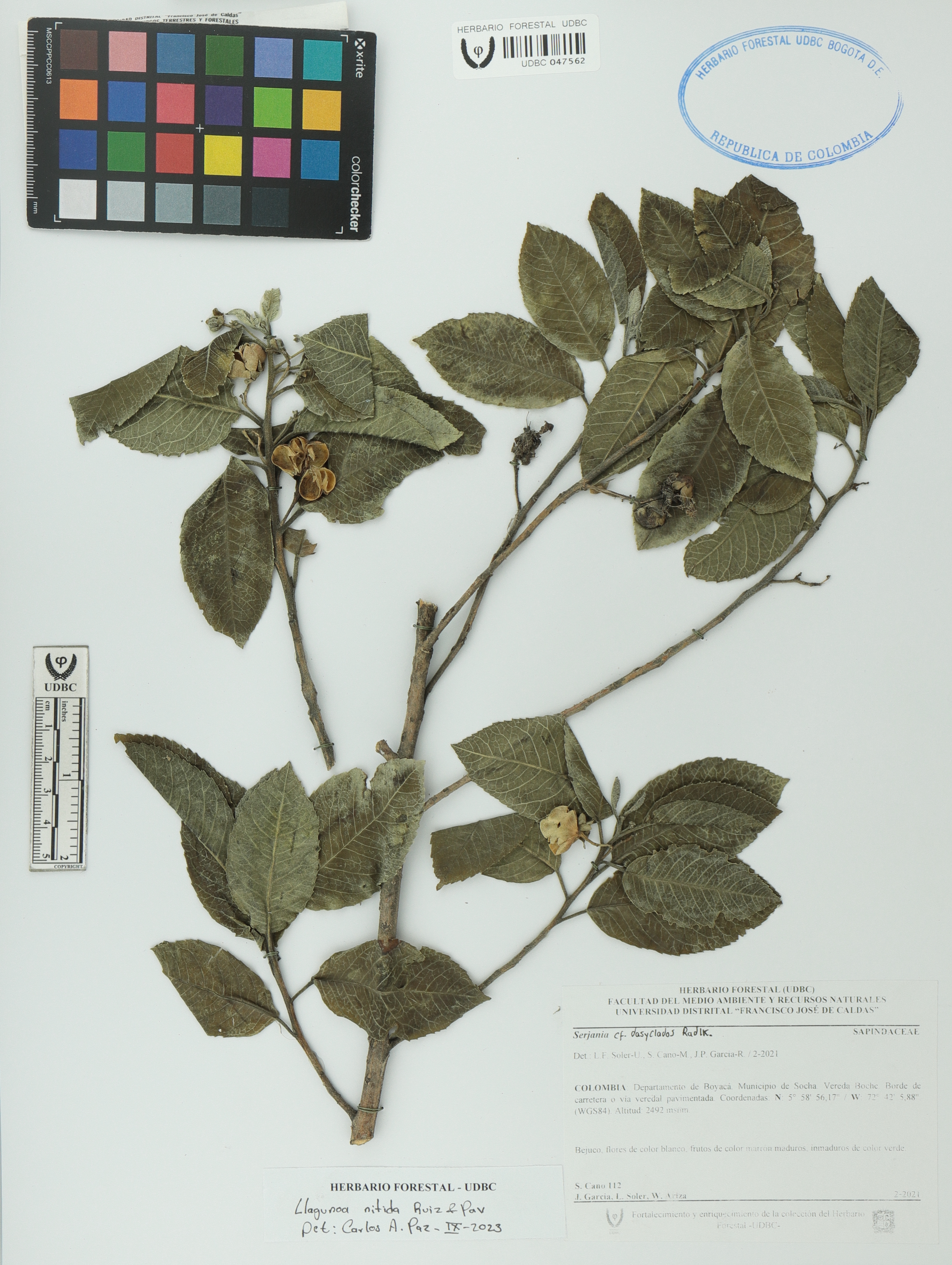 Fotografía del ejemplar Cano, S. 112, determinado como Llagunoa mollis en el año 2023