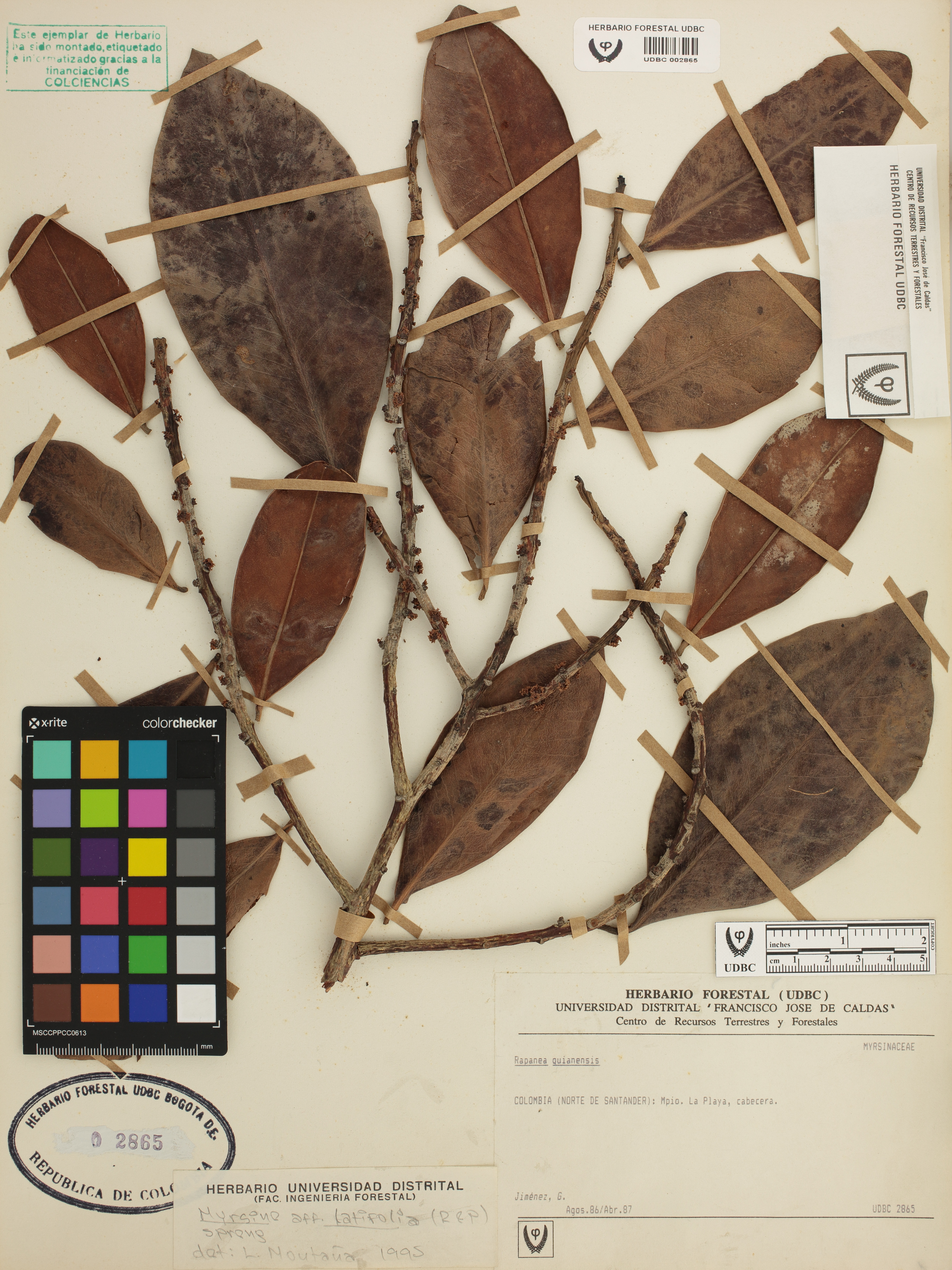 | dc.description | Fotografía del ejemplar Jiménez, G., determinado como Myrsine latifolia en el año 1995 | |