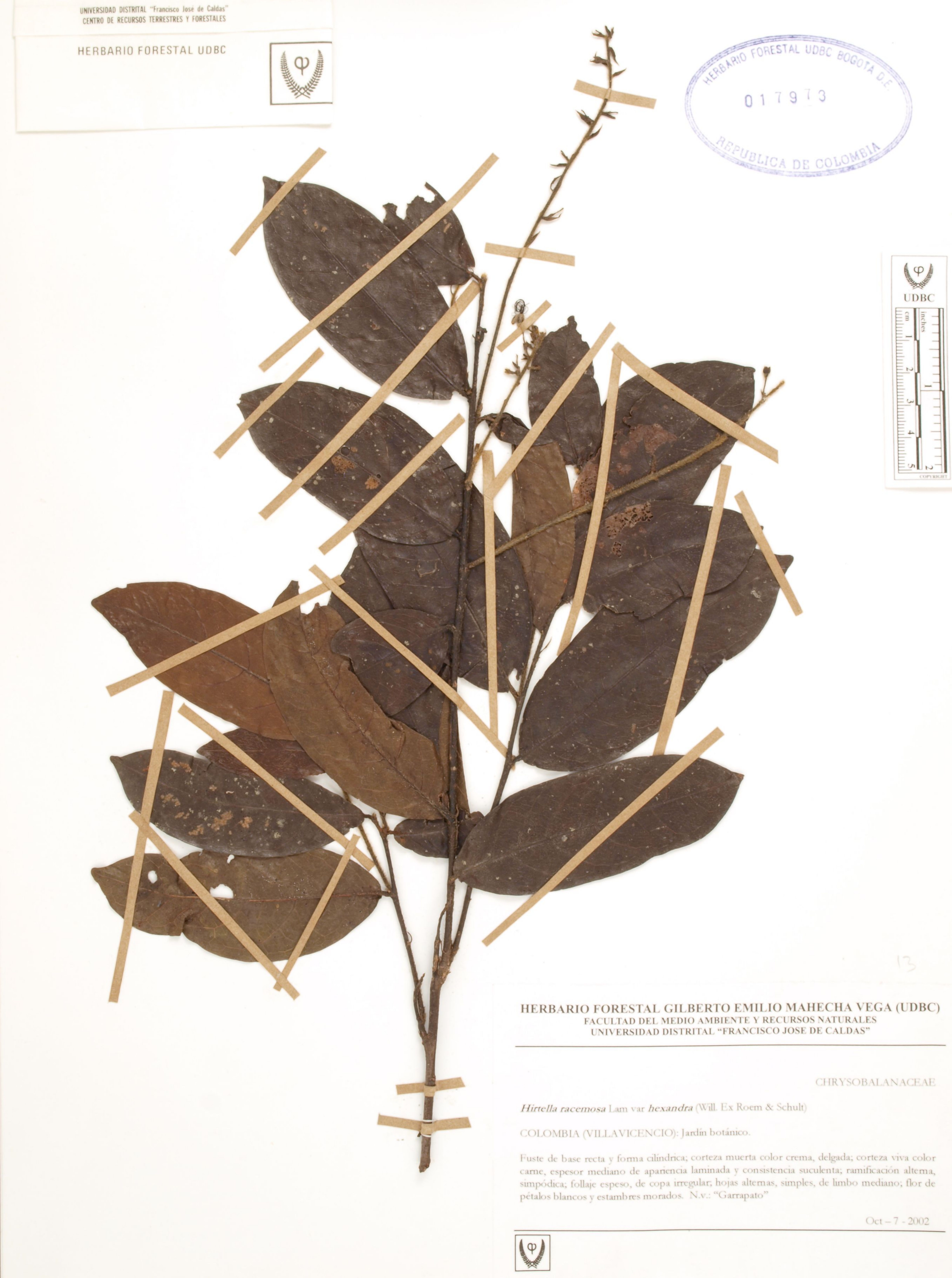 | dc.description | Fotografía del ejemplar SD, determinado como Hirtella racemosa var. hexandra | |