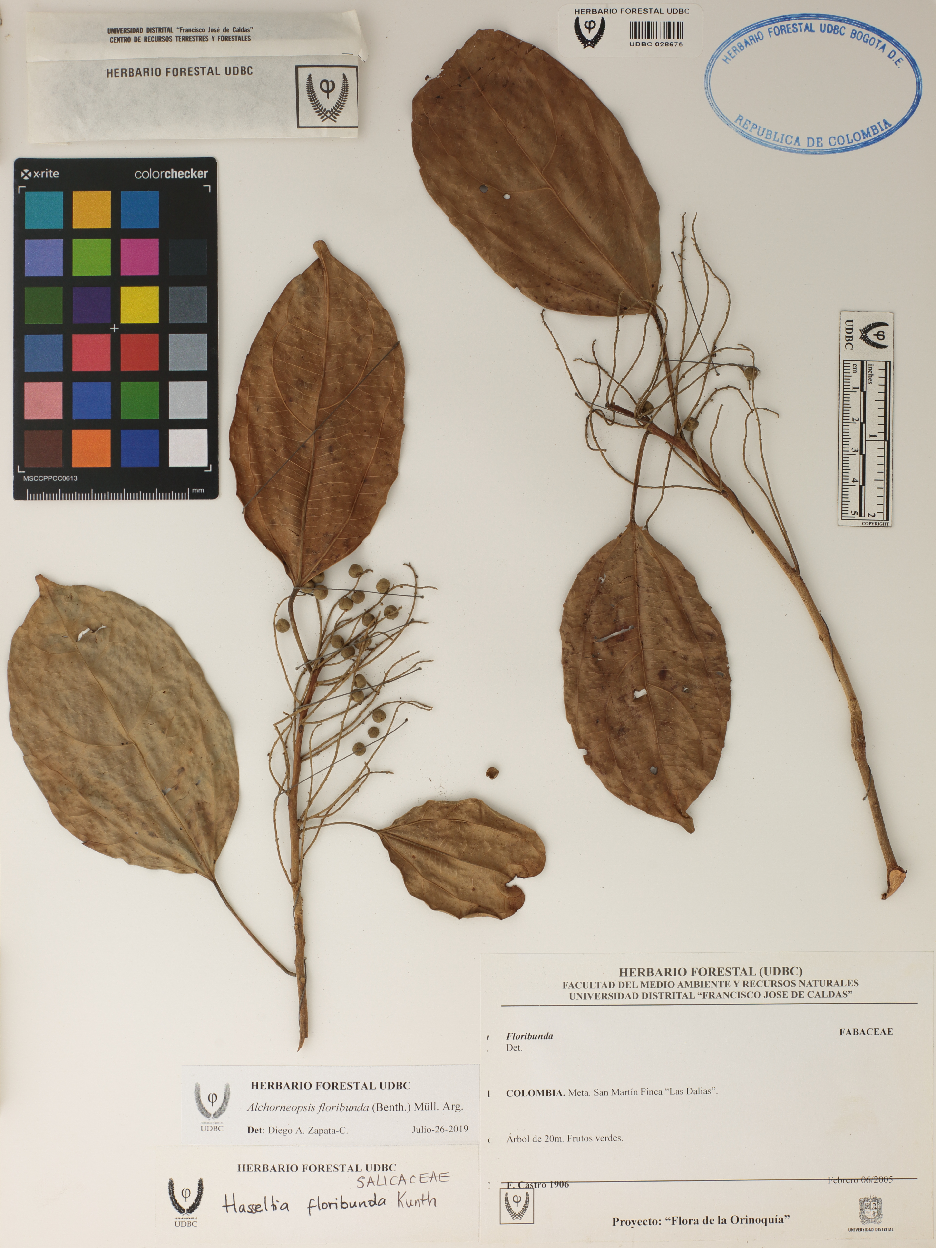 Fotografía del ejemplar Castro, F. 1906, determinado como Alchorneopsis floribunda en el año 2019