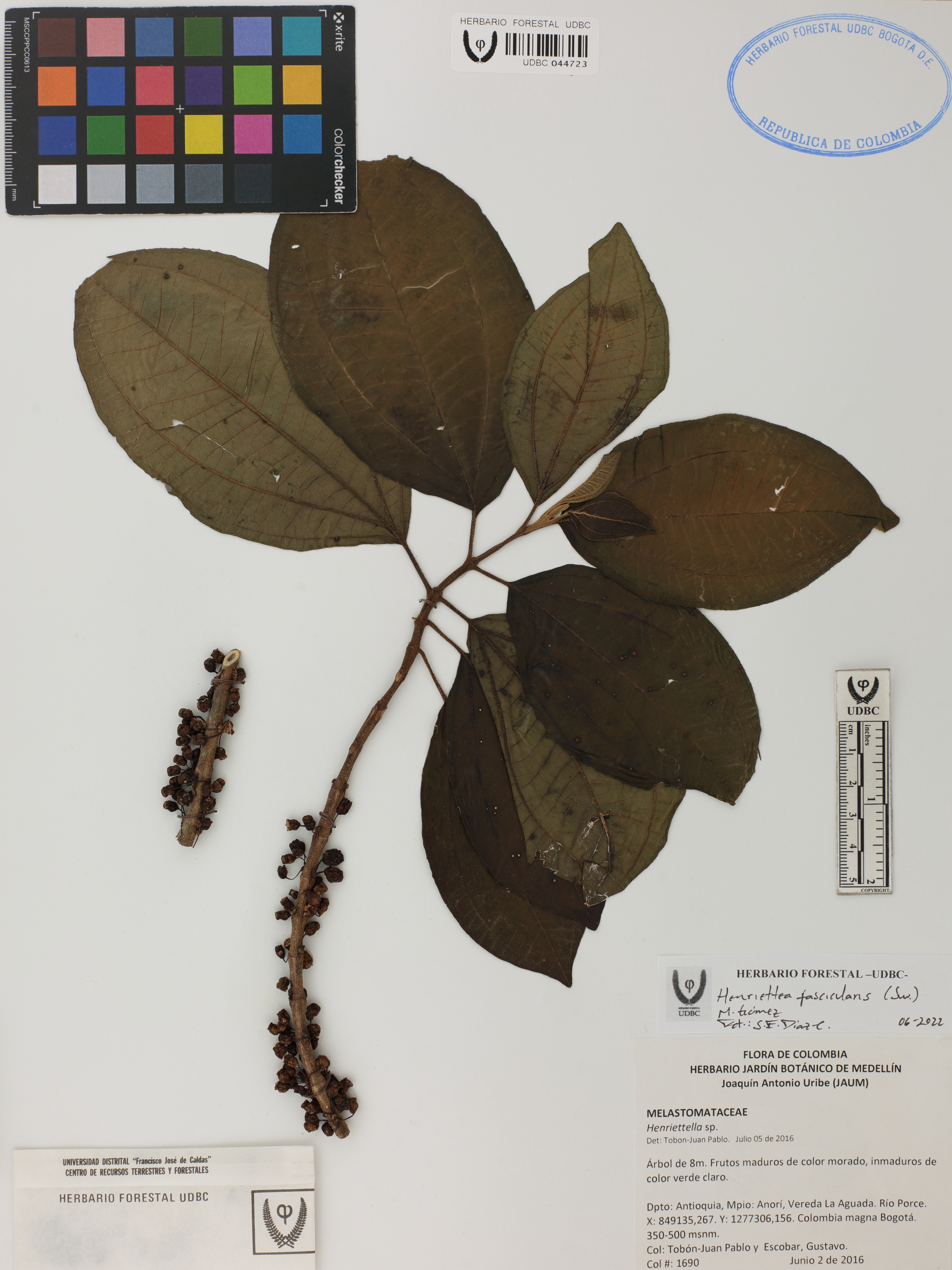 Fotografía del ejemplar Tobón-Agudelo, J. 1690, determinado como Henriettea fascicularis en el año 2022
