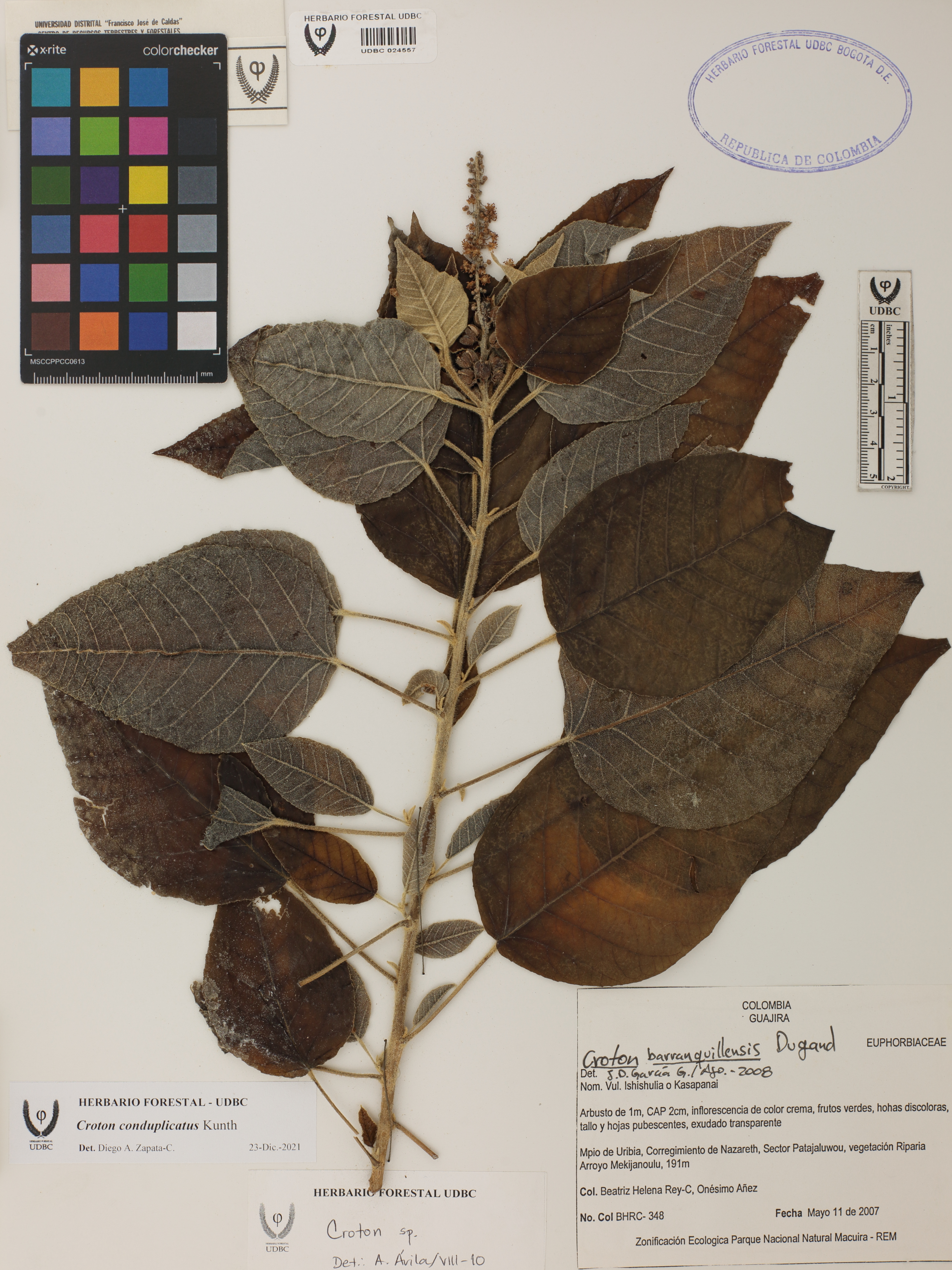 Fotografía del ejemplar Rey-C., B. 348, determinado como Croton conduplicatus en el año 2021