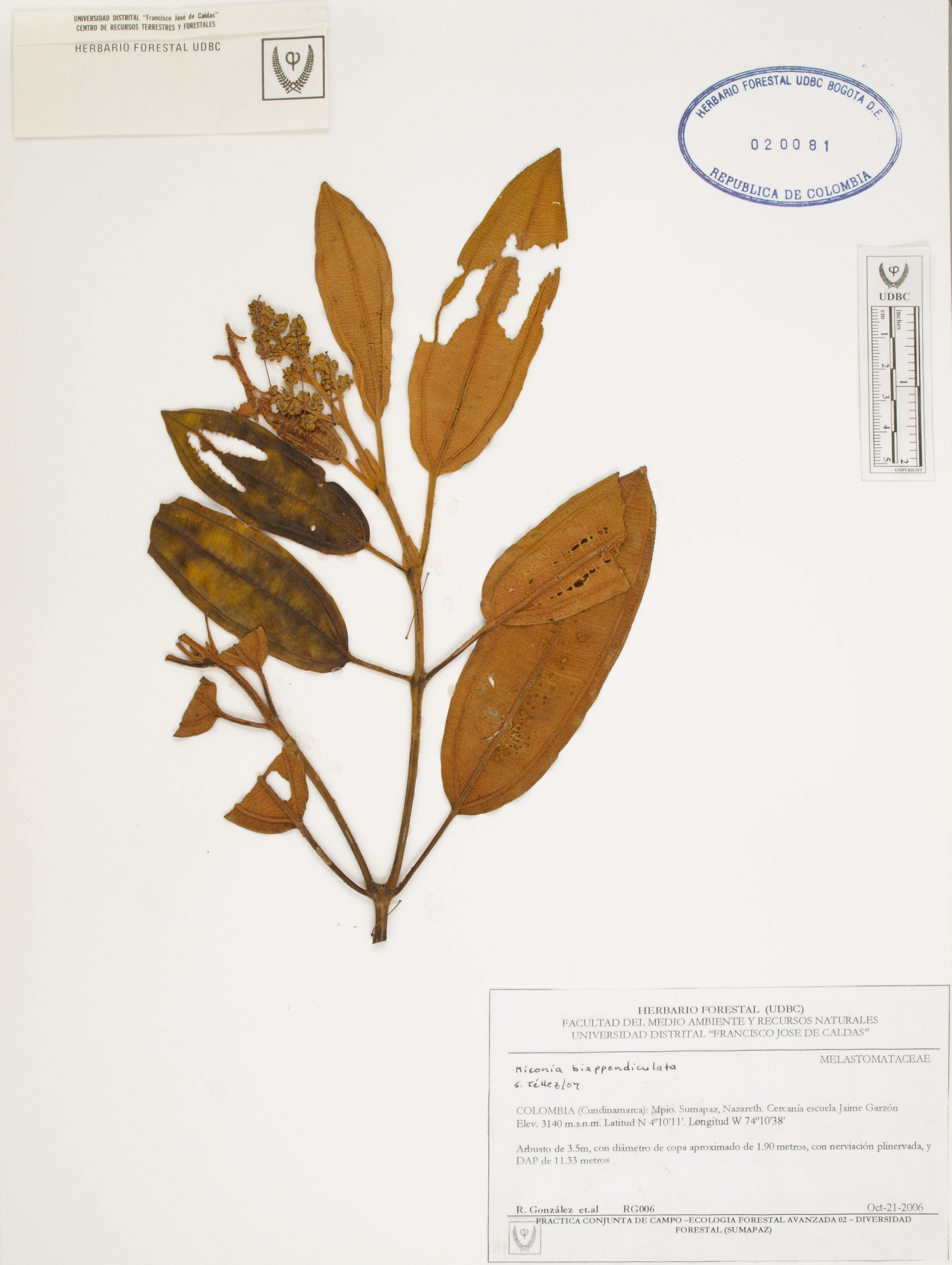 Fotografía del ejemplar González, R. 6, determinado como Miconia biappendiculata en el año 2007