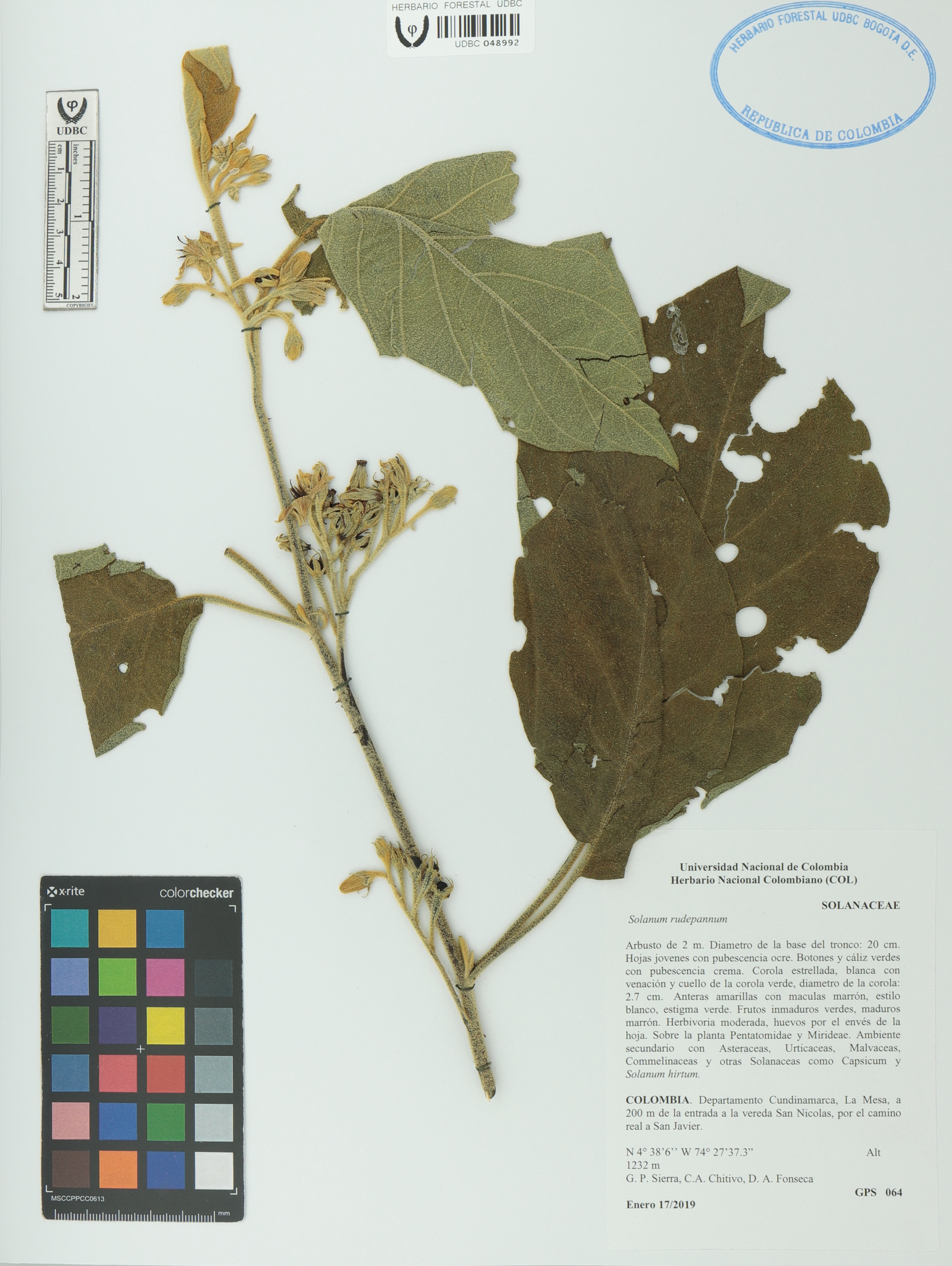 Fotografía del ejemplar Sierra, G. 064, determinado como Solanum rudepannum