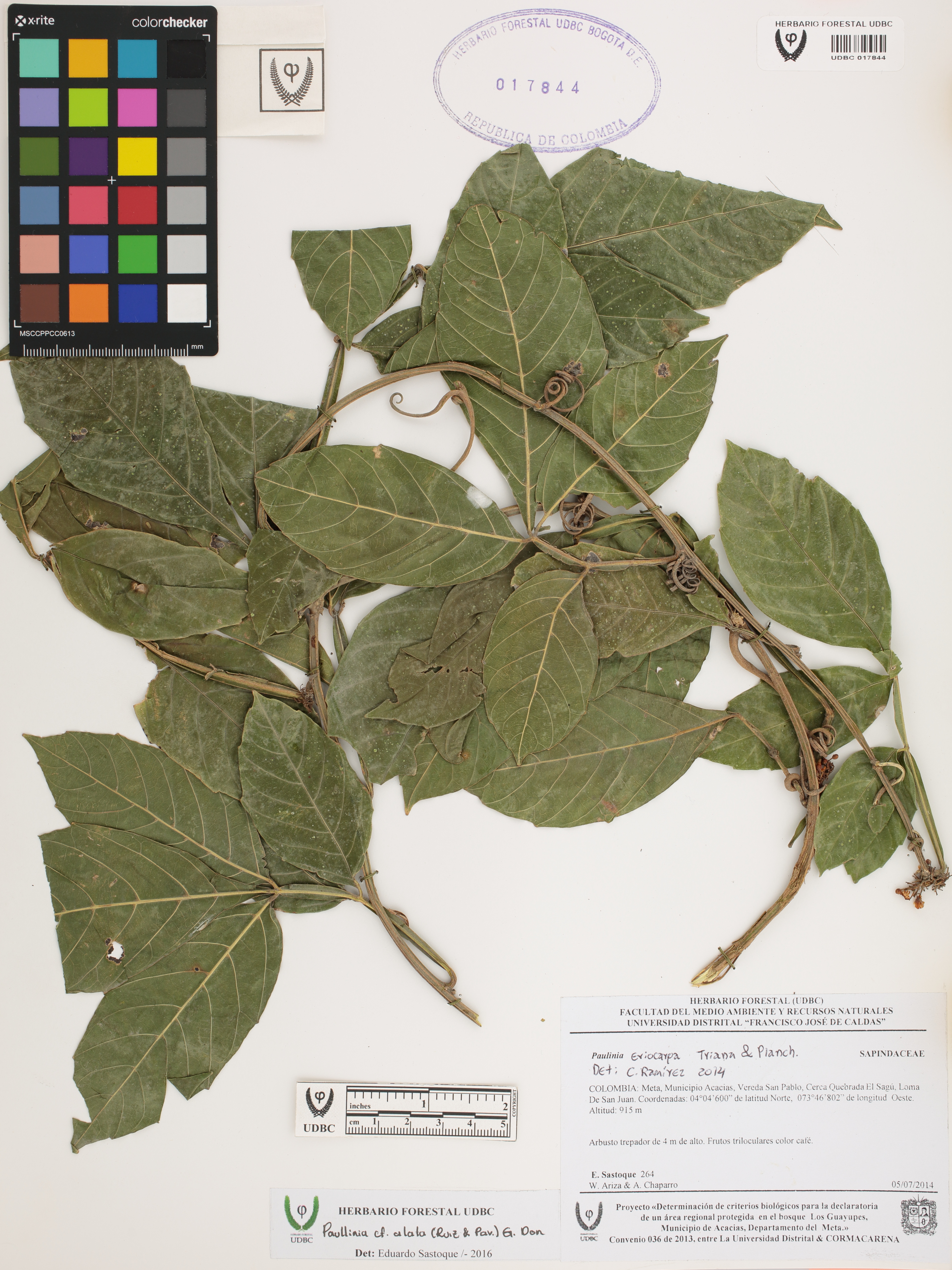 Fotografía del ejemplar Sastoque, E. 264, determinado como Paullinia alata en el año 2016
