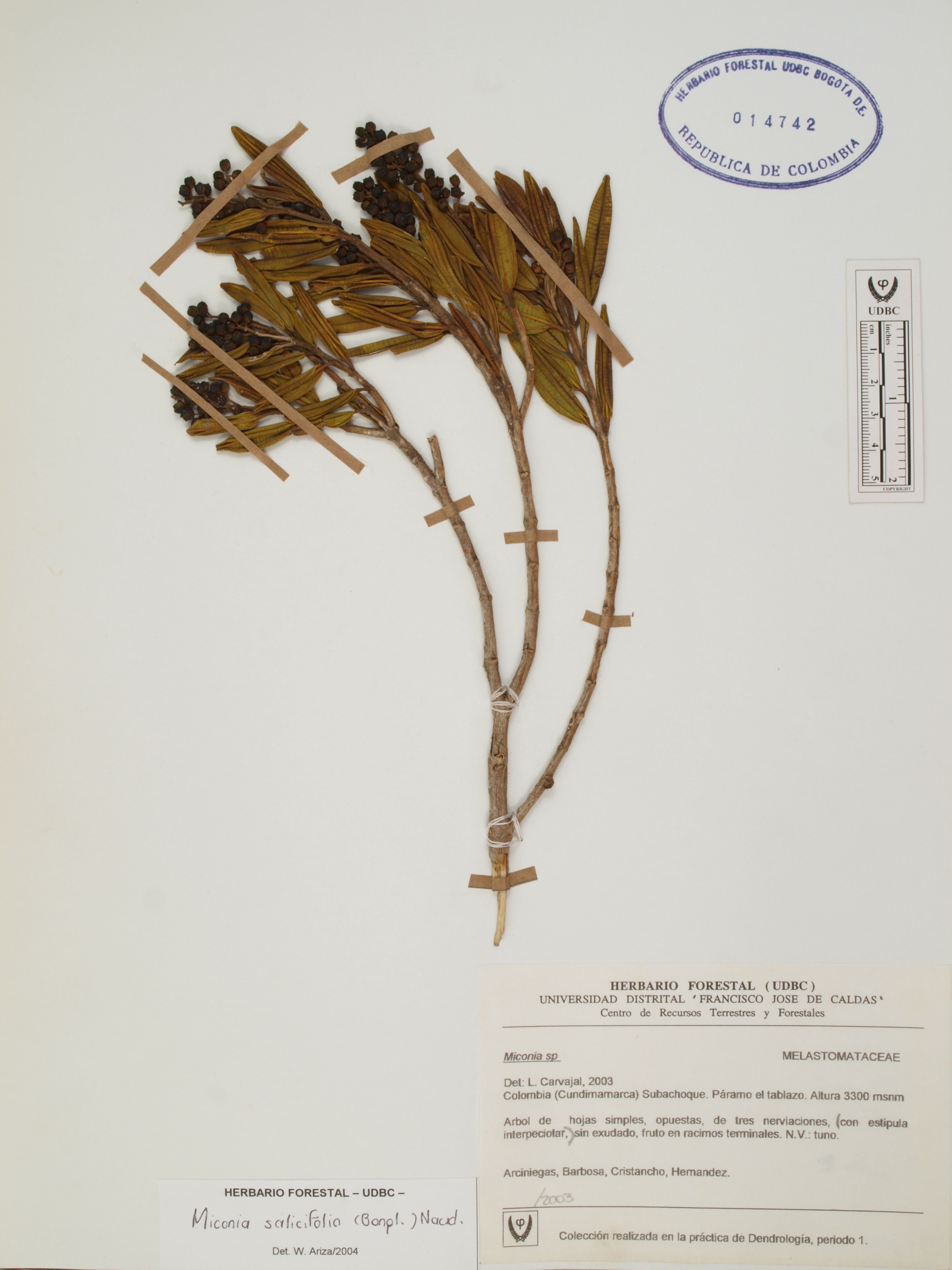 | dc.description | Fotografía del ejemplar Arciniegas, S., determinado como Miconia salicifolia en el año 2004 | |
