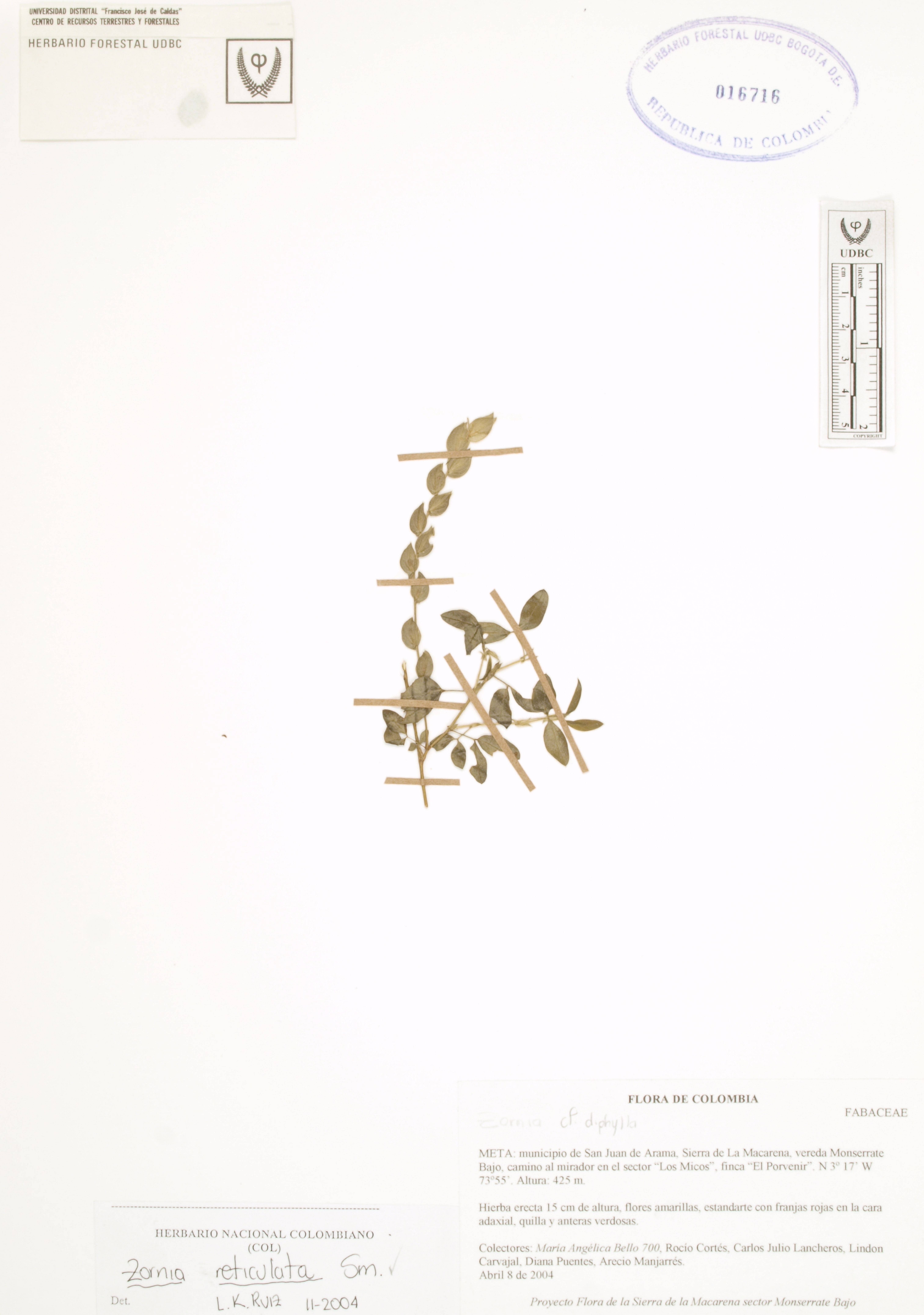 | dc.description | Fotografía del ejemplar Bello, M. 700, determinado como Zornia reticulata en el año 2004 | |