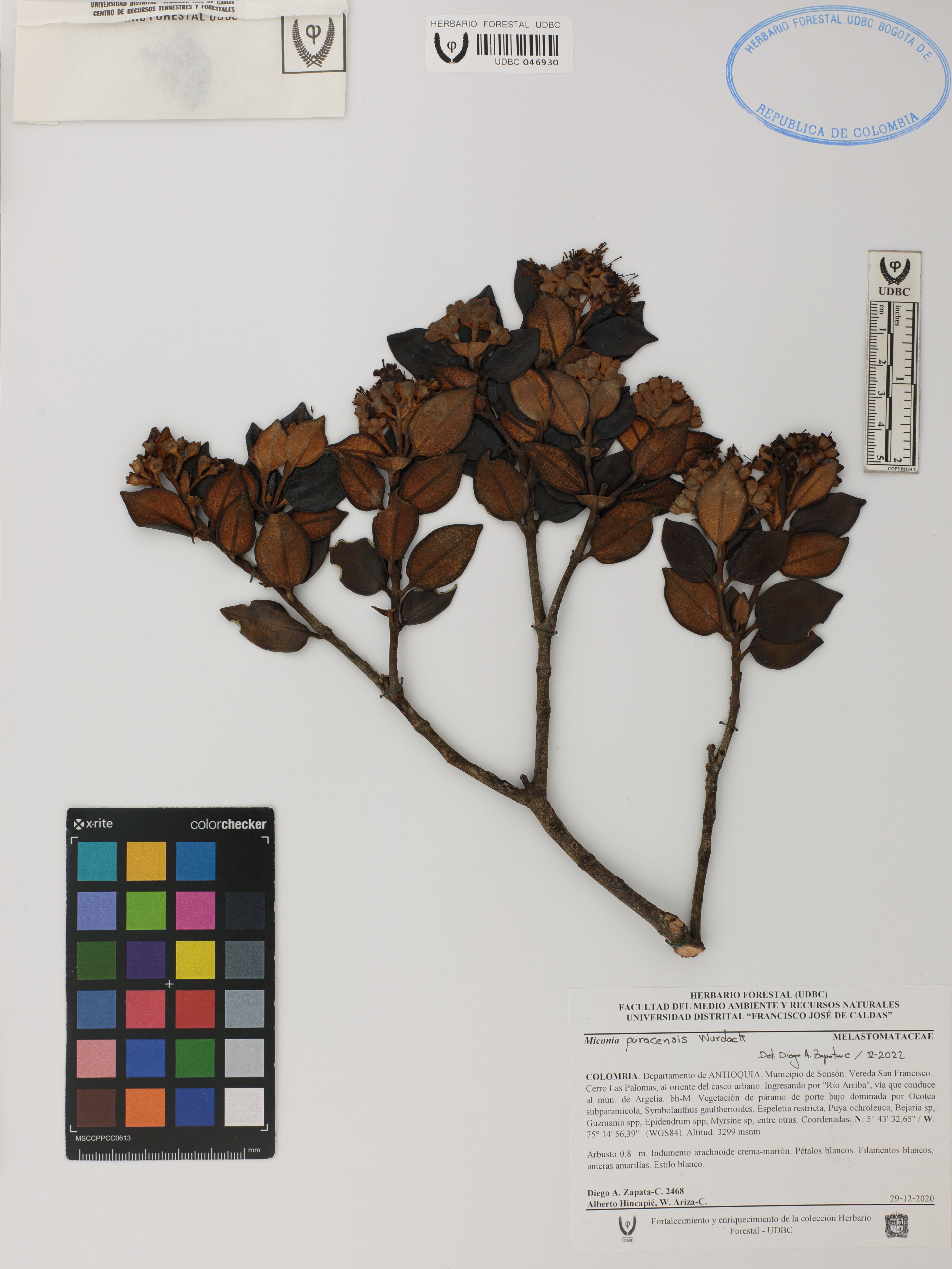 | dc.description | Fotografía del ejemplar Zapata-C., D. 2468, determinado como Miconia puracencis en el año 2022 | |