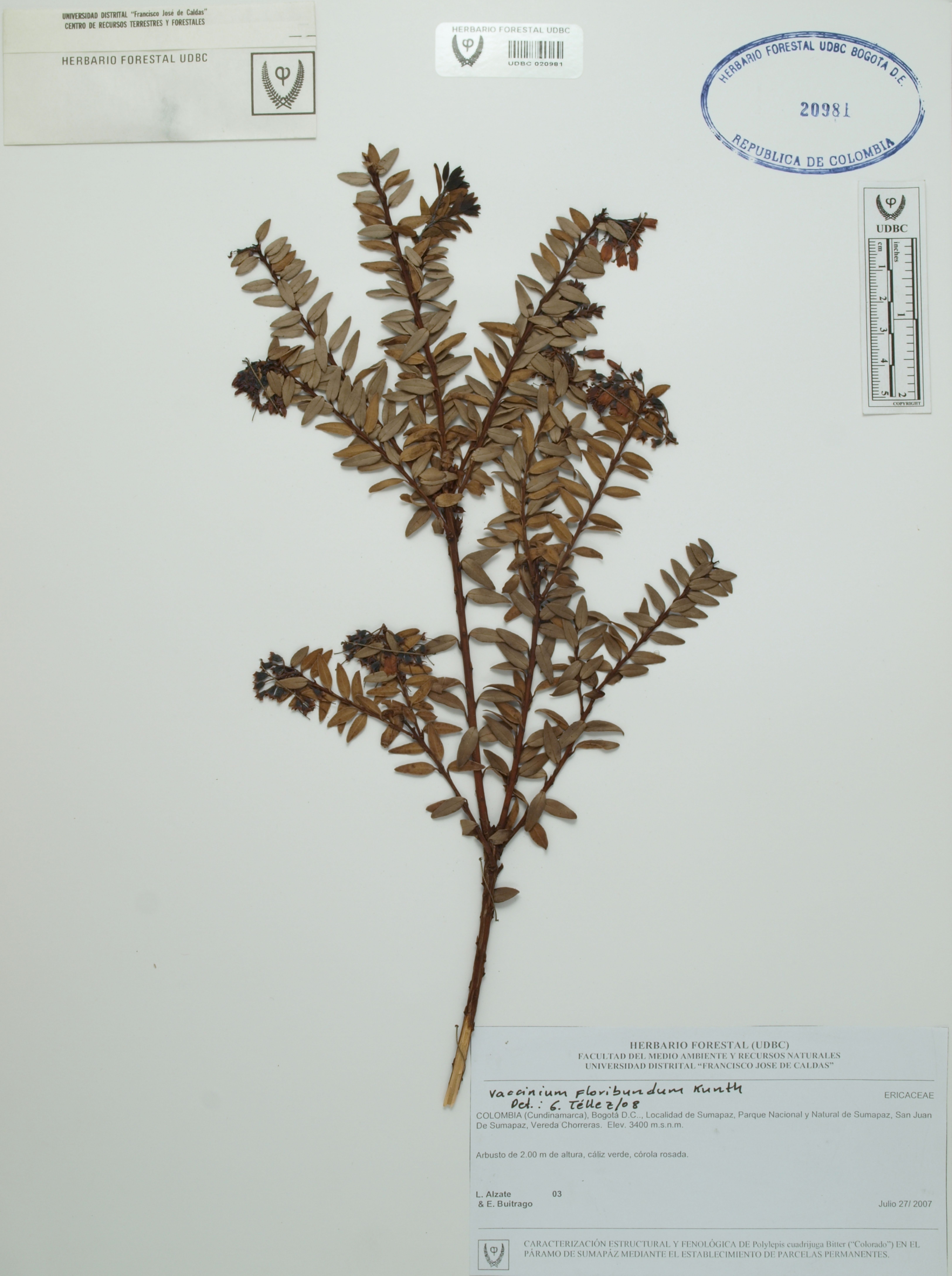 | dc.description | Fotografía del ejemplar Alzate, L. 3, determinado como Vaccinium floribundum en el año 2008 | |