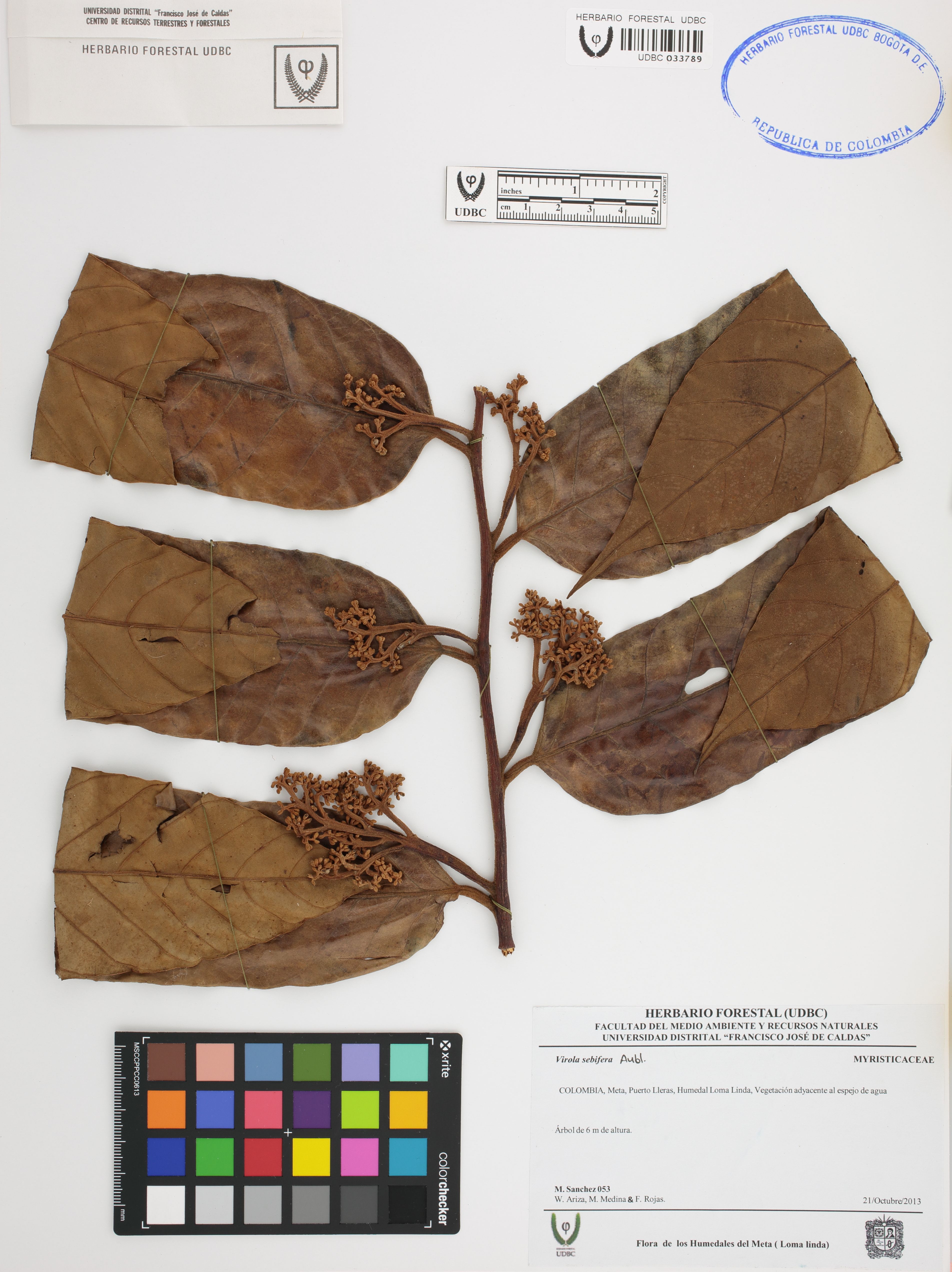 Fotografía del ejemplar Sánchez, M. 53, determinado como Virola sebifera